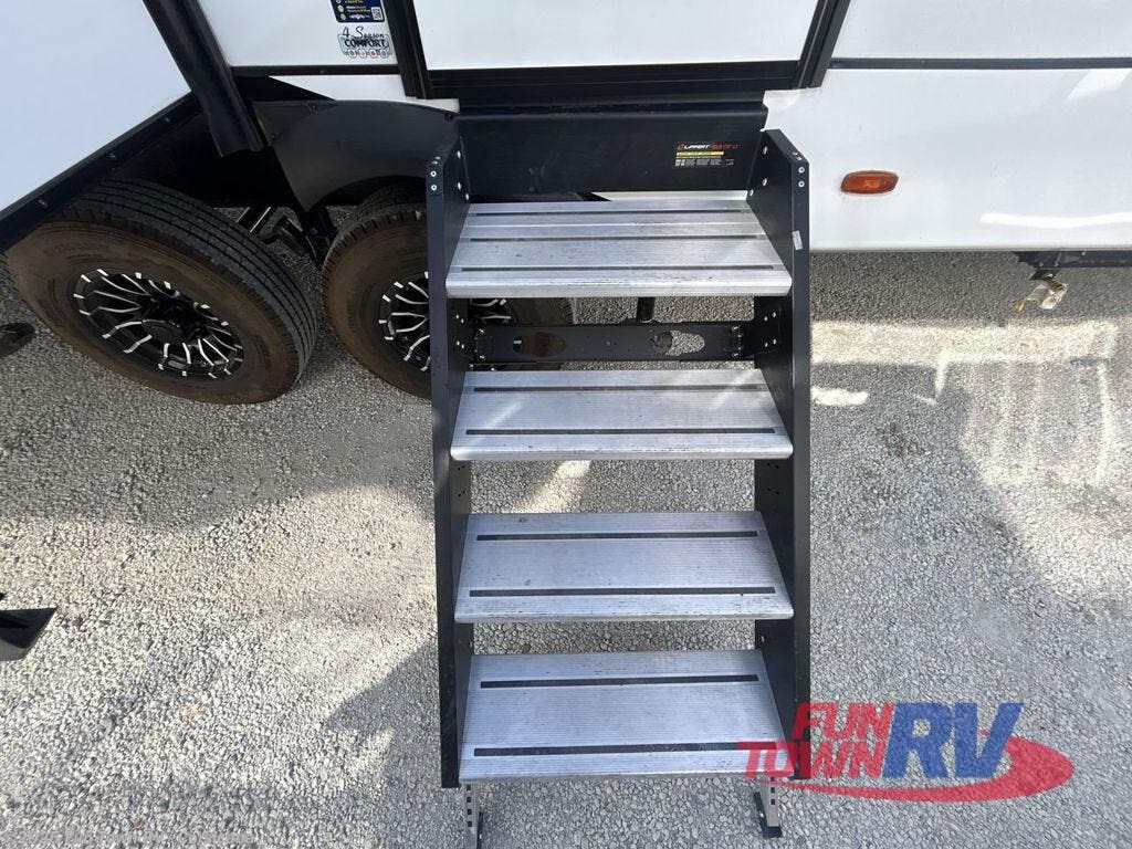 The Brookstone fifth wheels by Coachmen are coming to you with wide-body comfort, home-like amenities, and unique designs for a truly luxurious RV. The Weather Shield+ consists of a 6X double Azdel aluminum cage sidewall system, a Radiant Pro weather barrier system, and more that will help you extend your camping season or go full-time. Head inside to find solid surface countertops in the kitchen, an 4K Smart LED TV in the living room, slow rise roller night shades, and the list of comforts goes on! The Brookstone also includes 6-point electric auto-leveling, four Solid Step entry steps, an electric awning with LED lights, and many more exterior conveniences!