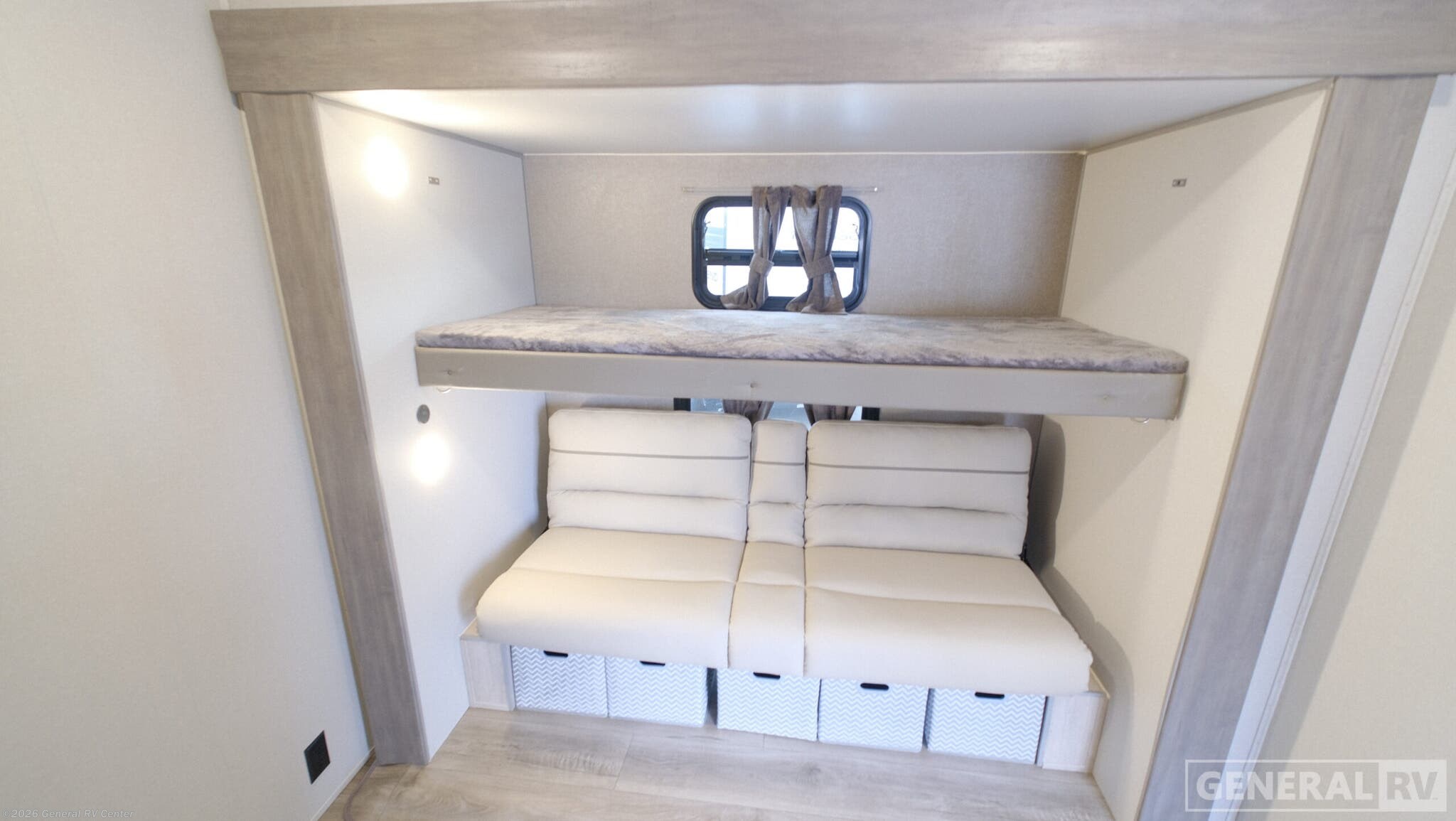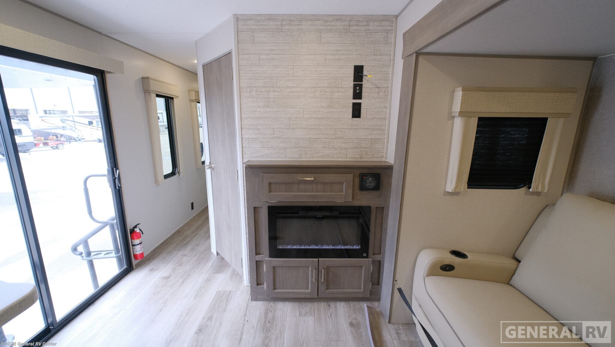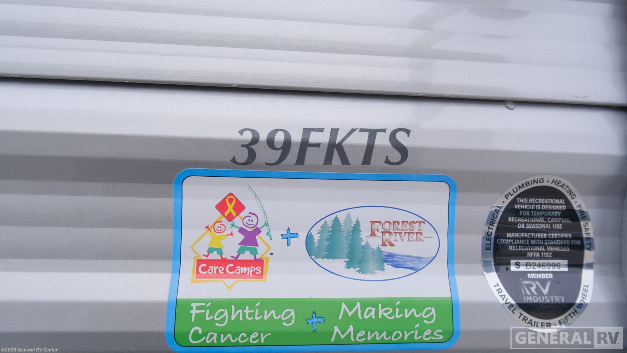 Coachmen Catalina Destination Series destination trailer 39FKTS highlights: Private Bunkhouse Dual Entry Breakfast Bar Residential Refrigerator Three Slides Fireplace Pack up your clothes and groceries and head out for a long weekend at your own place with this destination trailer! You can enter through the main patio door or near the rear bedroom and full bathroom. You will find storage throughout in the wardrobes, linen cabinet, pantry and more! The kids will surely head to the middle bunkhouse featuring a jackknife sofa with a flip-up bunk and storage totes beneath. Someone will probably relax on the theater seating by the fireplace, or you can all play a game at the booth dinette. The ceiling fans will keep you cooler in the summer months along with the air conditioner. And the cook will love the front kitchen layout and all the appliances to keep everyone fed. With any Catalina Destination trailer by Coachmen, you will enjoy comfortable extended stays wherever you decide to set up camp! The full length frame outriggers add strength to each unit, along with a seamless Alpha Roof membrane and Norco electromagnetic, powder coated chassis. You will love the open views provided by the large front bay windows, plus there are GE appliances, woodplank linoleum flooring, and hard valance window treatments to make your space feel more like home. Head outside to find a convenient "Leash Link" quick hookup D-ring for your furry friends, premium JBL exterior speakers, flush mount baggage doors for your gear, and the list of amenities goes on!