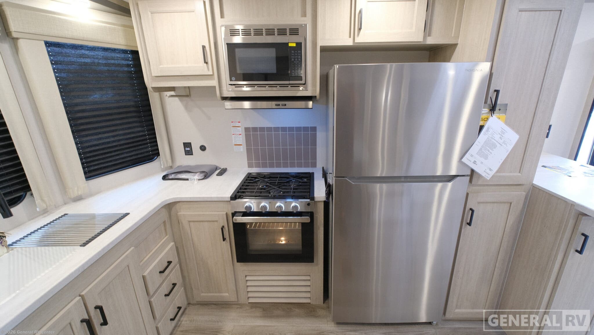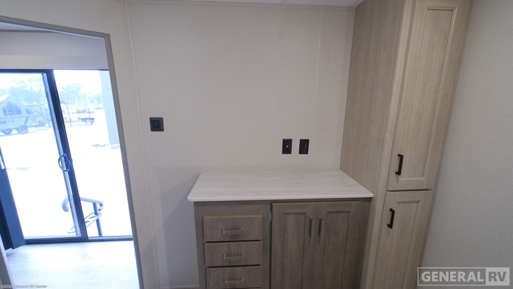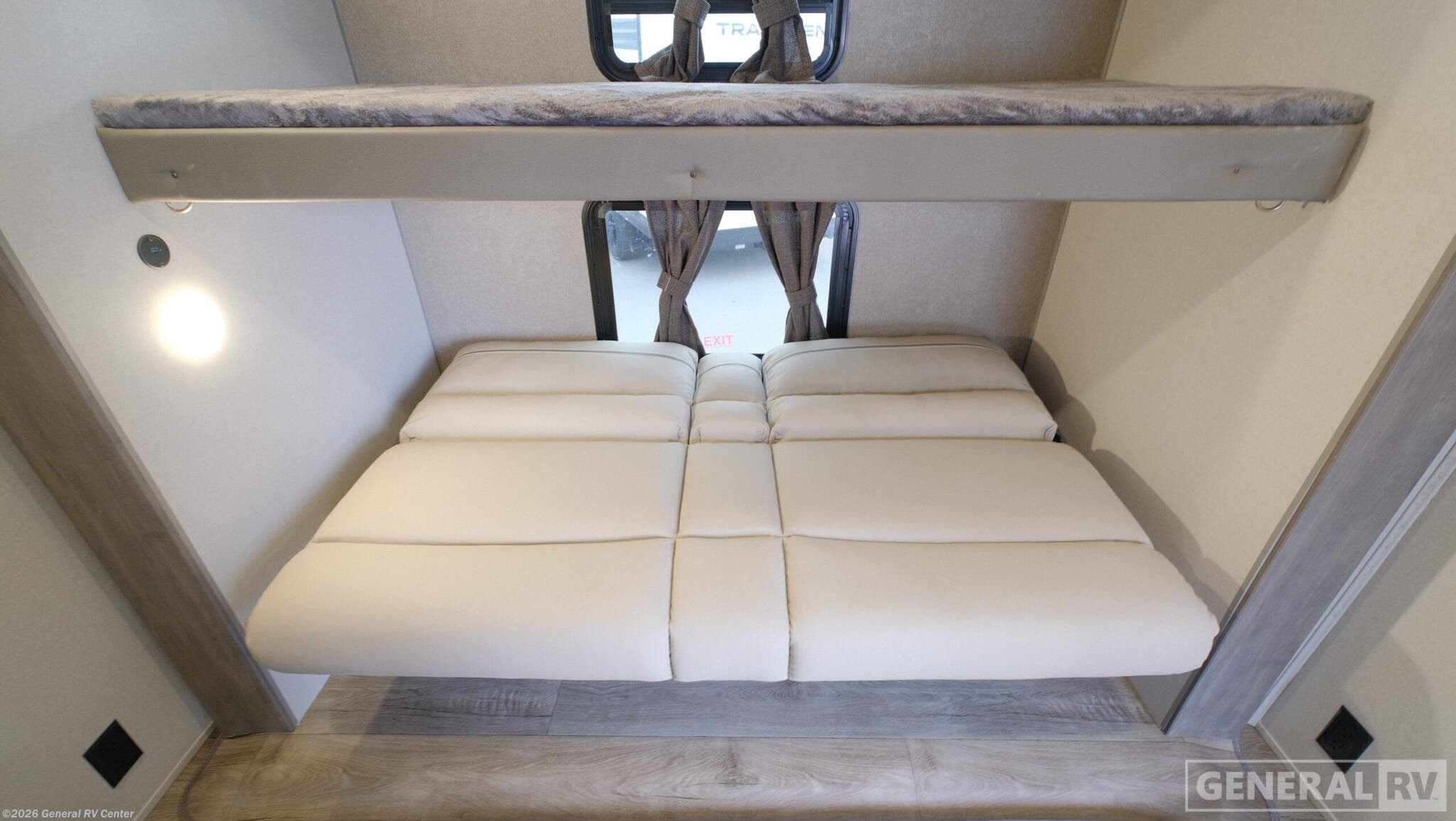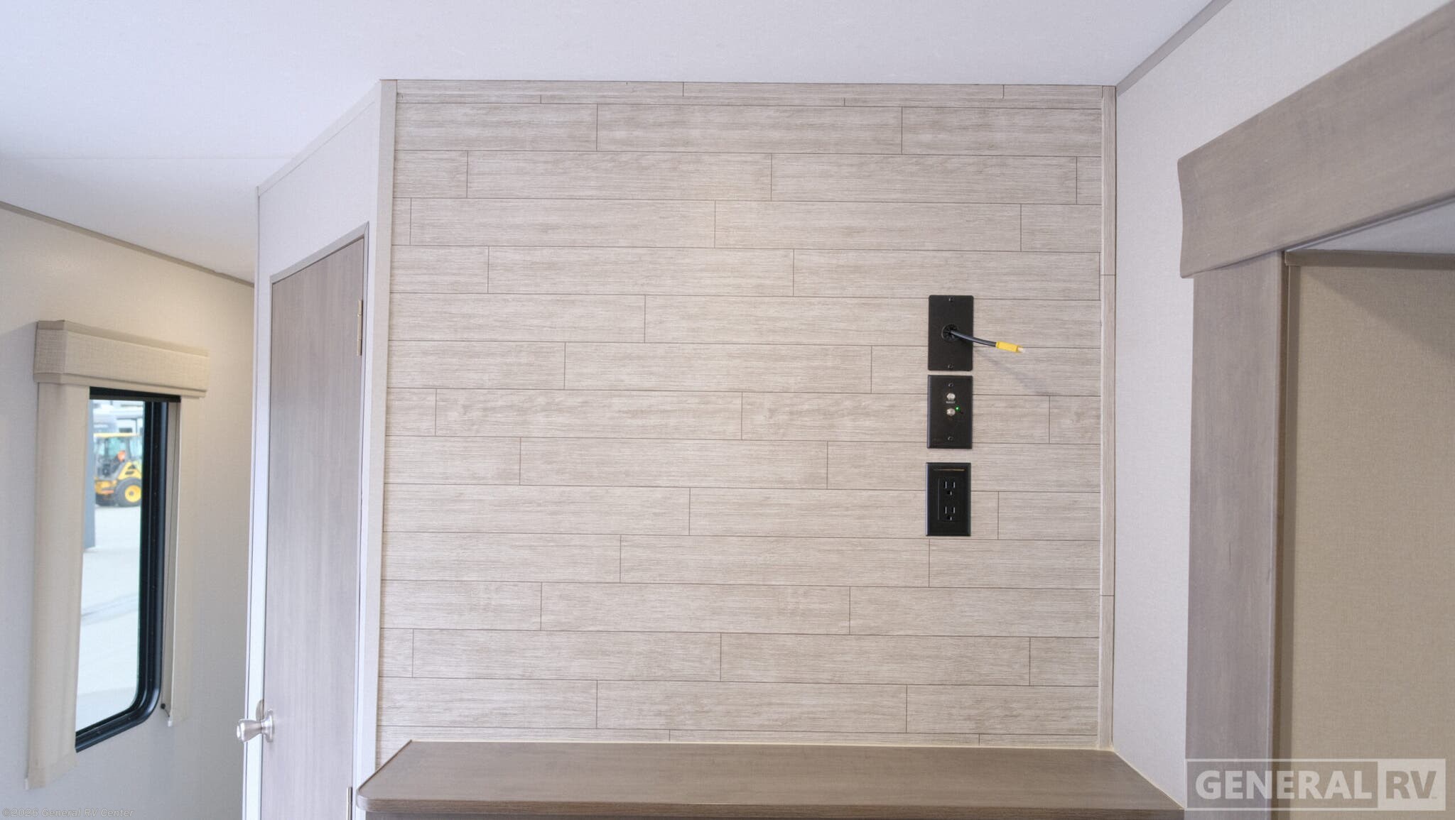 Coachmen Catalina Destination Series destination trailer 39FKTS highlights: Private Bunkhouse Dual Entry Breakfast Bar Residential Refrigerator Three Slides Fireplace Pack up your clothes and groceries and head out for a long weekend at your own place with this destination trailer! You can enter through the main patio door or near the rear bedroom and full bathroom. You will find storage throughout in the wardrobes, linen cabinet, pantry and more! The kids will surely head to the middle bunkhouse featuring a jackknife sofa with a flip-up bunk and storage totes beneath. Someone will probably relax on the theater seating by the fireplace, or you can all play a game at the booth dinette. The ceiling fans will keep you cooler in the summer months along with the air conditioner. And the cook will love the front kitchen layout and all the appliances to keep everyone fed. With any Catalina Destination trailer by Coachmen, you will enjoy comfortable extended stays wherever you decide to set up camp! The full length frame outriggers add strength to each unit, along with a seamless Alpha Roof membrane and Norco electromagnetic, powder coated chassis. You will love the open views provided by the large front bay windows, plus there are GE appliances, woodplank linoleum flooring, and hard valance window treatments to make your space feel more like home. Head outside to find a convenient "Leash Link" quick hookup D-ring for your furry friends, premium JBL exterior speakers, flush mount baggage doors for your gear, and the list of amenities goes on!