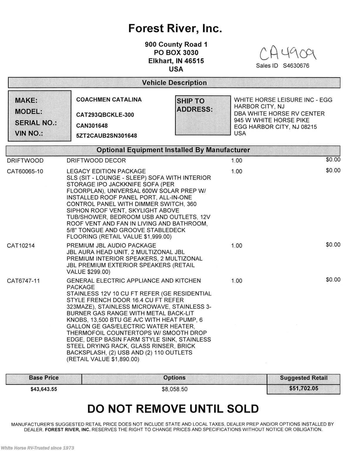 Request More Info on this 2025 Coachmen Catalina Legacy Edition 293QBCK Offered for sale by White Horse RV Center