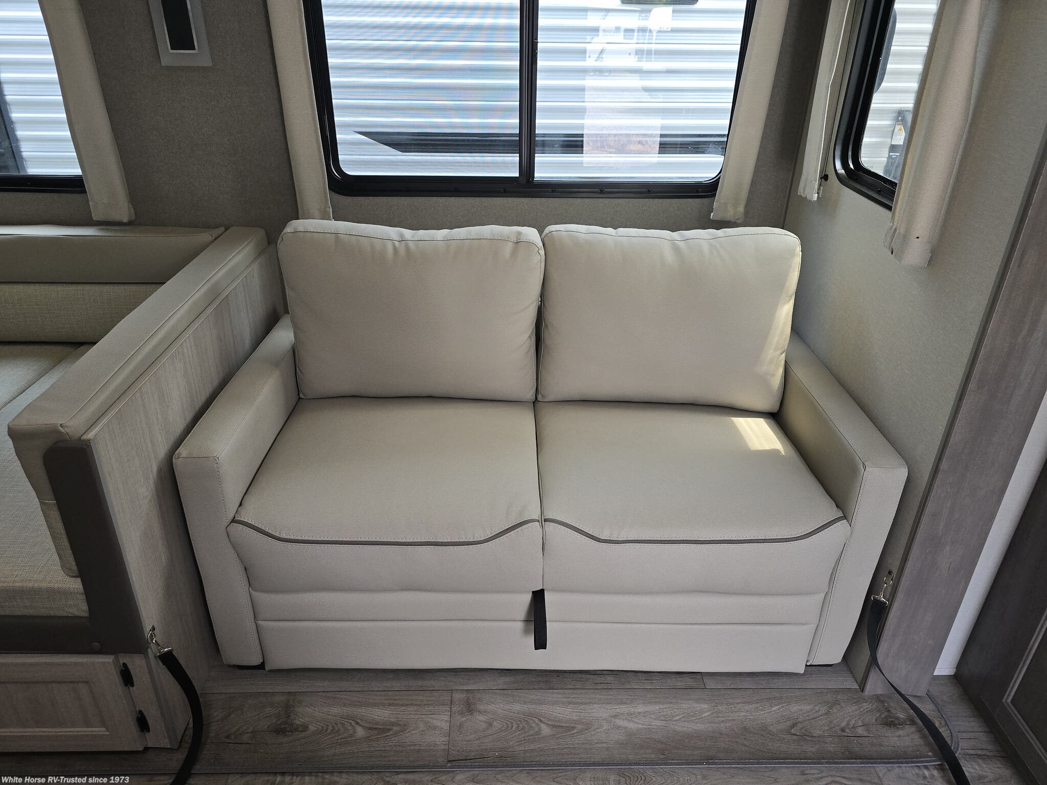 Large slide-out in main living area with U-shaped dinette and jackknife sofa—both convert to additional sleeping space