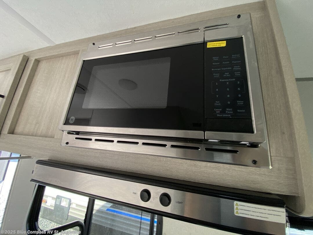 This couple's trailer will be perfect for all your outdoor adventures! There is a 60" x 74" Murphy bed up front with dual nightstands to keep your things tidy, and in the morning, you can fold up the bed to relax on the sofa. The bar top with two stools also includes storage below, plus there is a pantry and overhead storage for even more storage space. A full rear bath includes a 36" x 30" shower, a 12V 14" bath power vent fan, a marine toilet with foot flush, plus a linen closet to keep clean towels close by. This model also includes full kitchen amenities, including a GE two burner cooktop, a GE stainless microwave oven, plus a 3.3 cu. ft. 12V refrigerator to keep food fresh!