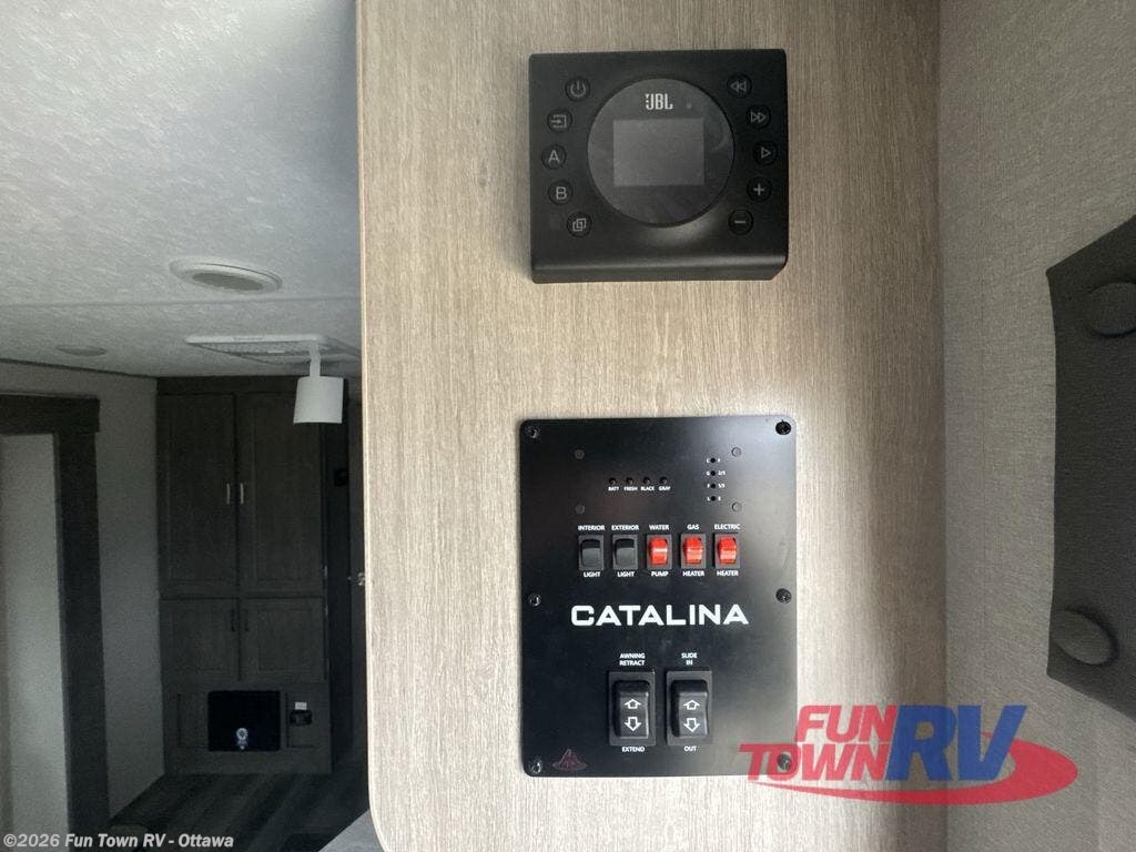 With any Catalina Summit Series 8 by Coachmen you will enjoy an affordable travel trailer packed with at-home comforts! The solid construction includes a Norco electromagnetic powder coated chassis, a seamless Alpha roof membrane, and full length frame outriggers for maximum support and durability. Dexter EZ lube axles with leaf spring suspension and self adjusting brakes provide smooth towing from home to campground, and the premium exterior graphics package is sure to turn heads as you travel down the highway. You will love the features included, such as a JBL Aura Cube media center, magnetic baggage door latches, 4,000 lumen interior touch lighting, and the list goes on!