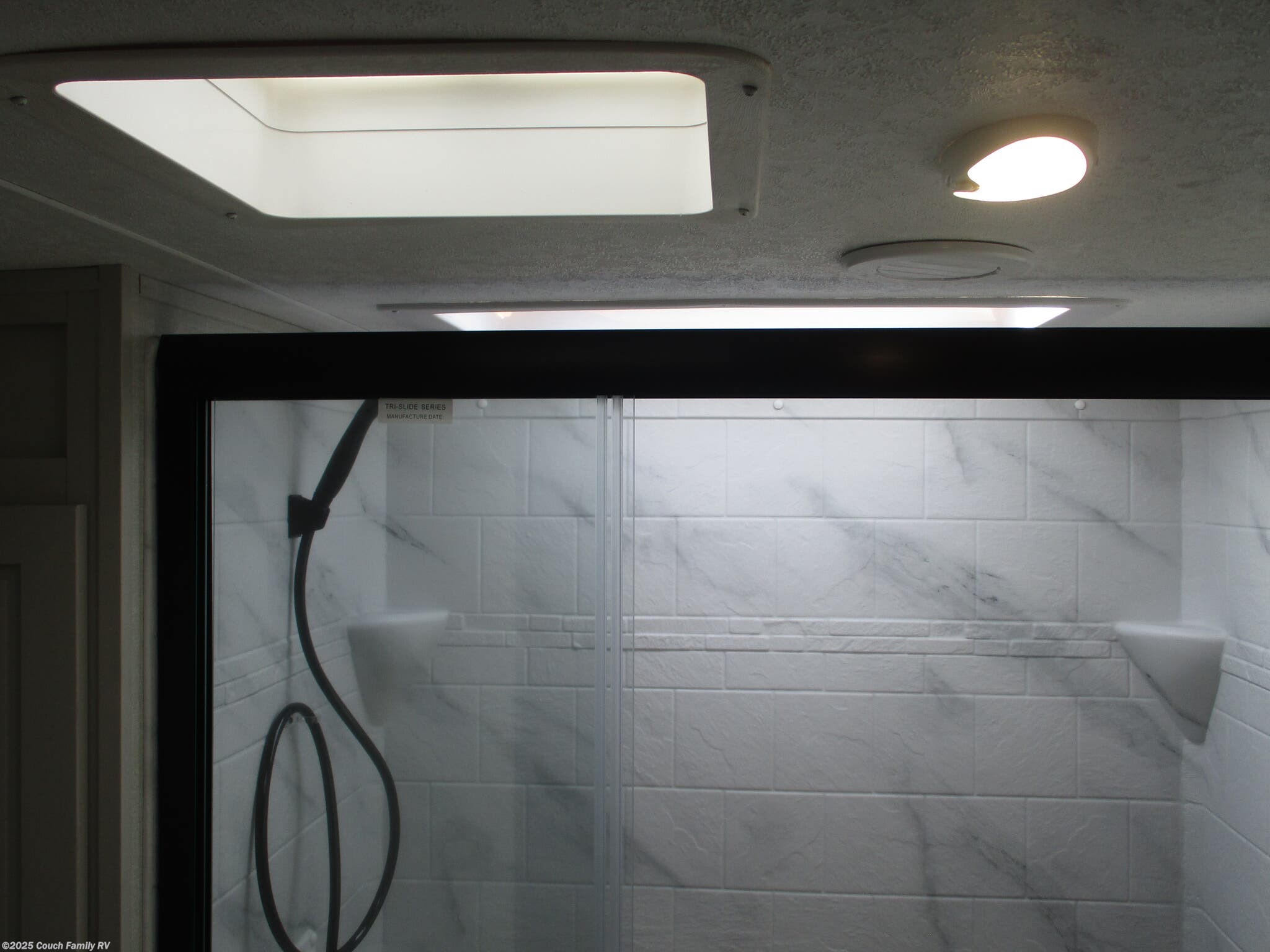 Everything you need for the perfect RV trip is packed into this 2025 Coachmen Chaparral 360IBL. Ready to be a proud Coachmen owner? This 2025 Coachmen Chaparral 360IBL is the perfect fit. If you’re looking for a family RV, you’ve found it: this rig sleeps 8. This rig cuts no corners on space, expanding into a massive living area with 4 slides. Cook up the best camping meals with appliances like the fridge, oven, stove. Memories are made around the dinner table, and this free standing dinette w/chairs is where you’ll make them. Comfort is important when RVing, and you’ll find just that with the queen bed. You’ll never get too hot or too cold inside your rig thanks to the A/C option. Go longer without filling up thanks to the 48 gallon fresh water tanks. The exterior features make camping a breeze, such as awning, exterior speakers, external shower, ladder, leveling jacks, skylight, slideout and spare tire kit. An outside shower makes it easier to keep your adventure rig clean.