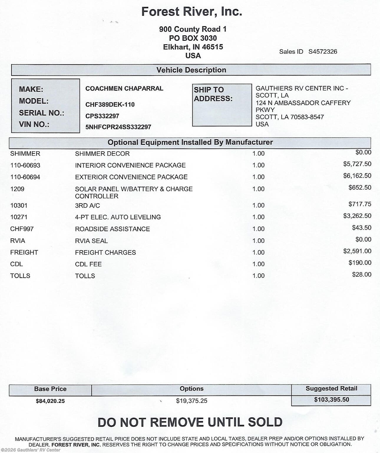 Request More Info on this 2025 Coachmen Chaparral 389DEK Offered for sale by Gauthiers' RV Center