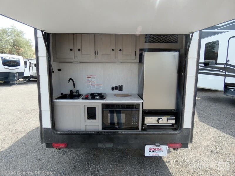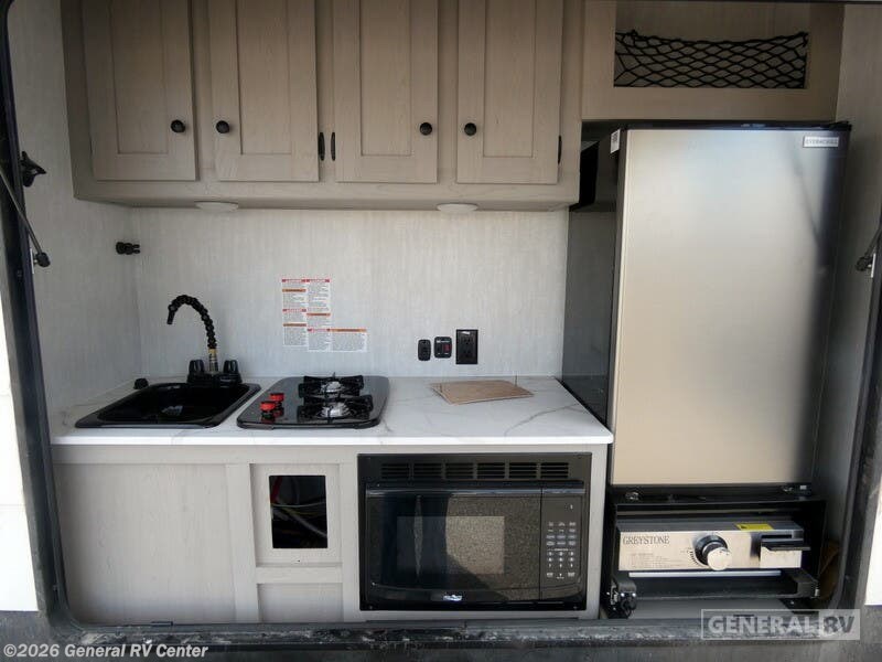## Coachmen Clipper ROK off-road teardrop trailer 12000 highlights - 54" x 74" Flip-Up Bed - Gaucho Seating/Bed - Rear Hatch Camp Kitchen - 3.3 Cu. Ft. Refrigerator - Slide-Out Griddle - Cassette Toilet When you want to explore choose this 12000 Series Clipper ROK for your basic off-road adventure needs and a bit more by offering you a 54" X 74" flip-up bed with storage beneath,and gaucho seating that pulls out into a bed for an additional camper at night. There is front and rear overhead cabinetry for storage, and a cassette toilet for added convenience especially at night. A rear hatch camp kitchen provides a place for you to create meals and snacks while you explore. There is a slide-out griddle, a 3.3 cu. ft. 12-volt refrigerator for your cold items, a single sink, and two burner cooktop, plus a microwave oven. There is also plenty of overhead storage for your paper products and spices. A9' manual awningcreates a bit of added outdoor living space where you can set up your camp chairs. These Clipper ROK off-road teardrop trailers allow you to camp anywhere you want, even off the beaten path a bit. Each feature an E-Coated tubular steel frame for strength, and aflipped axle for better ground clearance, plusfour layers of roof insulationincluding a one-piece seamless skin with Lauan plywood underlayment in between the skin and foam structure to provide added protection. Four heavy-duty scissor style jacks will provide you stability when setting up, and the wide-trac ultra lube spring axle and electric brakes provide smooth travel to and from your favorite camping locations. A 5K furnace will keep you warm on chilly nights, and the 5,000 BTU AC andtinted windows,which help reduce heat from the sun during the day, will keep you cool when it is warm. The rear hatch camp kitchen makes it easy to create meals on the go with a slide-out griddle, sink, and refrigerator. The 12000 series even offers a two burner cooktop and microwave oven as well. Take any new Clipper ROK on your next off-road adventure.