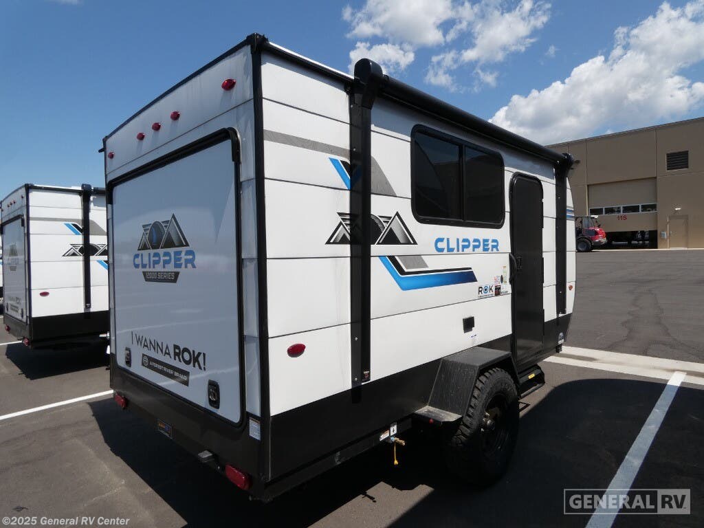 ## Coachmen Clipper ROK off-road teardrop trailer 12000 highlights - 54" x 74" Flip-Up Bed - Gaucho Seating/Bed - Rear Hatch Camp Kitchen - 3.3 Cu. Ft. Refrigerator - Slide-Out Griddle - Cassette Toilet When you want to explore choose this 12000 Series Clipper ROK for your basic off-road adventure needs and a bit more by offering you a 54" X 74" flip-up bed with storage beneath,and gaucho seating that pulls out into a bed for an additional camper at night. There is front and rear overhead cabinetry for storage, and a cassette toilet for added convenience especially at night. A rear hatch camp kitchen provides a place for you to create meals and snacks while you explore. There is a slide-out griddle, a 3.3 cu. ft. 12-volt refrigerator for your cold items, a single sink, and two burner cooktop, plus a microwave oven. There is also plenty of overhead storage for your paper products and spices. A9' manual awningcreates a bit of added outdoor living space where you can set up your camp chairs. These Clipper ROK off-road teardrop trailers allow you to camp anywhere you want, even off the beaten path a bit. Each feature an E-Coated tubular steel frame for strength, and aflipped axle for better ground clearance, plusfour layers of roof insulationincluding a one-piece seamless skin with Lauan plywood underlayment in between the skin and foam structure to provide added protection. Four heavy-duty scissor style jacks will provide you stability when setting up, and the wide-trac ultra lube spring axle and electric brakes provide smooth travel to and from your favorite camping locations. A 5K furnace will keep you warm on chilly nights, and the 5,000 BTU AC andtinted windows,which help reduce heat from the sun during the day, will keep you cool when it is warm. The rear hatch camp kitchen makes it easy to create meals on the go with a slide-out griddle, sink, and refrigerator. The 12000 series even offers a two burner cooktop and microwave oven as well. Take any new Clipper ROK on your next off-road adventure.