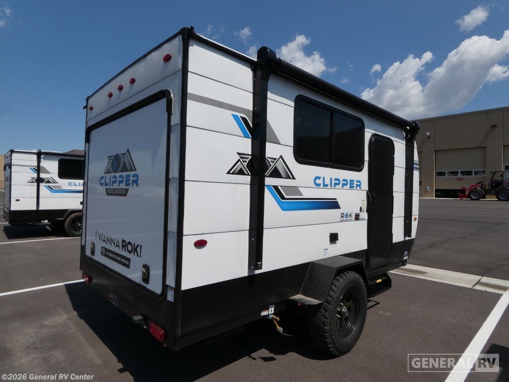 ## Coachmen Clipper ROK off-road teardrop trailer 12000 highlights - 54" x 74" Flip-Up Bed - Gaucho Seating/Bed - Rear Hatch Camp Kitchen - 3.3 Cu. Ft. Refrigerator - Slide-Out Griddle - Cassette Toilet When you want to explore choose this 12000 Series Clipper ROK for your basic off-road adventure needs and a bit more by offering you a 54" X 74" flip-up bed with storage beneath,and gaucho seating that pulls out into a bed for an additional camper at night. There is front and rear overhead cabinetry for storage, and a cassette toilet for added convenience especially at night. A rear hatch camp kitchen provides a place for you to create meals and snacks while you explore. There is a slide-out griddle, a 3.3 cu. ft. 12-volt refrigerator for your cold items, a single sink, and two burner cooktop, plus a microwave oven. There is also plenty of overhead storage for your paper products and spices. A9' manual awningcreates a bit of added outdoor living space where you can set up your camp chairs. These Clipper ROK off-road teardrop trailers allow you to camp anywhere you want, even off the beaten path a bit. Each feature an E-Coated tubular steel frame for strength, and aflipped axle for better ground clearance, plusfour layers of roof insulationincluding a one-piece seamless skin with Lauan plywood underlayment in between the skin and foam structure to provide added protection. Four heavy-duty scissor style jacks will provide you stability when setting up, and the wide-trac ultra lube spring axle and electric brakes provide smooth travel to and from your favorite camping locations. A 5K furnace will keep you warm on chilly nights, and the 5,000 BTU AC andtinted windows,which help reduce heat from the sun during the day, will keep you cool when it is warm. The rear hatch camp kitchen makes it easy to create meals on the go with a slide-out griddle, sink, and refrigerator. The 12000 series even offers a two burner cooktop and microwave oven as well. Take any new Clipper ROK on your next off-road adventure.