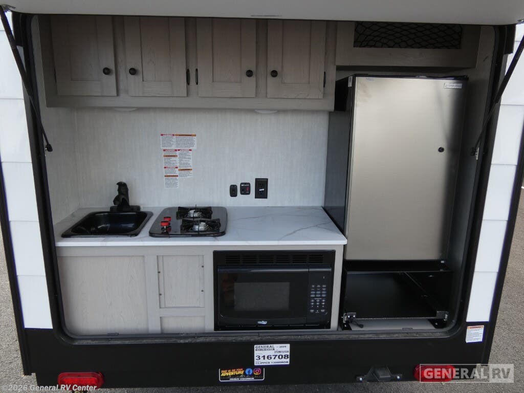 Coachmen Clipper ROK 13000ROK Teardrop Trailer Highlights - 54" x 74" Flip-Up Bed - Gaucho Seating/Bed - Rear Hatch Camp Kitchen - Cassette Toilet - 9' Power Awning The Coachmen Clipper ROK 13000ROK is a rugged, off-road teardrop trailer designed for adventurers seeking both comfort and capability. Measuring just over 16 feet in length and weighing under 2,500 lbs., it's easily towable by a variety of vehicles. Inside, you'll find a 54" x 74" flip-up bed with storage beneath, along with gaucho seating that converts into an additional sleeping space. The interior also features overhead cabinetry and a cassette toilet for added convenience. The rear hatch opens to a well-equipped camp kitchen, including a pull-out griddle and grill combo cooktop, a 3.3 cu. ft. 12V refrigerator, microwave, sink with hot and cold faucet, and multiple overhead storage cabinets. Built for off-road adventures, the 13000ROK comes with 15" off-road heavy-duty tires, electric brakes, easy lube axles, and frame-mounted stabilizer jacks. Comfort is ensured with a 5,000 BTU A/C unit and a 20,000 BTU propane furnace. Additional features include a 9' power awning, outside shower with hot/cold water, and various power outlets to keep your devices charged.
