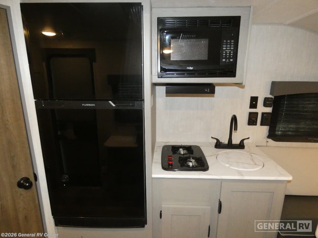 The 2025 Coachmen Clipper Cadet 14CR is a compact yet versatile travel companion designed for those who crave adventure without sacrificing comfort. This charming model offers a clever layout that maximizes space, featuring a center kitchen equipped with a two-burner cooktop and a compact refrigerator that runs on both electric and propane. Whether you're preparing a quick meal or a gourmet dinner, you'll find cooking a breeze in this well-organized space. At the front, the living area invites relaxation with its convertible sofa and dinette, both of which transform into cozy sleeping spaces, accommodating up to four people. The rear bath, complete with a curtain shower, ensures convenience and privacy. With a powered retractable awning, you can easily extend your living space outdoors, perfect for enjoying the scenery or hosting friends. Lightweight yet sturdy, the Clipper Cadet 14CR is ready to take you on unforgettable journeys. For more details or to see this model in person, visit your nearest General RV dealership.
