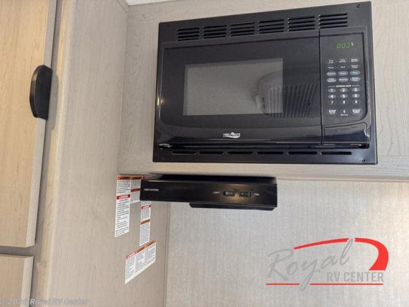 Enjoy your own space with a front queen bed and overhead storage, providing a quiet retreat after a day of adventure.