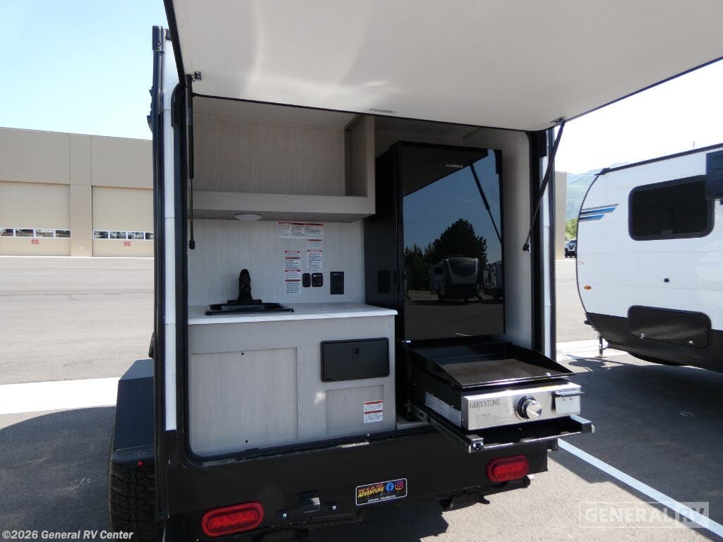 Coachmen Clipper ROK 8000ROK Teardrop Trailer Highlights - 54" x 72" Flip-Up Bed - Rear Hatch Kitchen - 7' Bag Awning - 15" Off-Road Tires - Under 1,800 lbs. The 2025 Coachmen Clipper ROK 8000ROK is a compact, off-road-ready teardrop trailer designed for adventurers seeking simplicity and functionality. Measuring just over 12 feet in length and weighing approximately 1,724 lbs, it's easily towable by a variety of vehicles. Inside, you'll find a 54" x 72" flip-up bed with storage beneath, along with a portable table for dining or workspace needs. The interior also features overhead cabinetry, a 5,000 BTU A/C unit, a 20,000 BTU propane furnace, and multiple power outlets to keep your devices charged. The rear hatch opens to a well-equipped camp kitchen, including a pull-out cooktop, a 3.3 cu. ft. 12V refrigerator, hot and cold faucet, and overhead storage. Built for off-road adventures, the 8000ROK comes with 15" off-road heavy-duty tires, electric brakes, easy lube axles, and frame-mounted stabilizer jacks. Additional features include a 7' bag awning, outside shower with hot/cold water, LP quick connect, and various power outlets to keep your devices charged. Optional upgrades like a 200W solar package with a 30 Amp controller, spare tire and carrier, and a roof-top tent are available for those looking to enhance their off-grid experience.