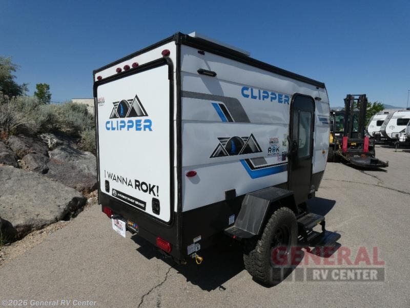 These Clipper ROK travel trailers allow you to camp anywhere you want, even off the beaten path a bit. Each model features electric brakes, easy lube axles, and 15" off-road heavy duty tires. There are frame-mounted stabilizer jacks to help keep your unit secure, and the outside shower with hot/cold water will come in handy when rinsing off hiking gear. A 5K BTU A/C unit and 20K BTU propane furnace will keep you comfortable as you camp, and there are 12V outlets along with 110V outlets to keep your electronics charged.