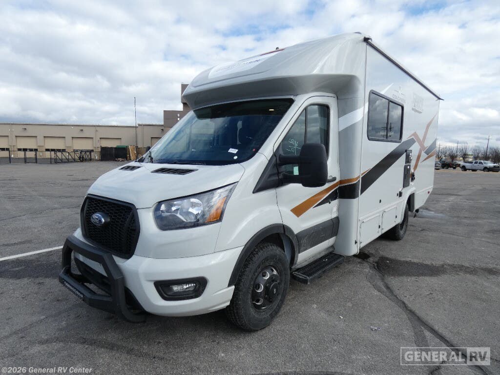 Experience the perfect blend of comfort and efficiency with the 2025 Coachmen Cross Trail EV 21XG. This versatile RV is designed for those who crave adventure without sacrificing the comforts of home. With a sleek 24.17-foot length, its compact design is perfect for navigating both highways and scenic backroads. The front living area features a cozy J-Lounge that easily converts into an additional sleeping space, making it ideal for family trips or a getaway with friends. The center kitchen is equipped with a two-burner induction cooktop and a compact electric refrigerator, ensuring you have everything you need to whip up delicious meals on the road. The rear of the RV houses a spacious bathroom with a 24 x 32 shower, offering a refreshing retreat after a day of exploring. The Murphy double bed maximizes space, providing a comfortable sleeping area that can be easily stowed away to create more living room during the day. With a 14 ft. powered retractable awning, you can enjoy outdoor relaxation in any weather. Built on a Ford Transit chassis with a powerful EcoBoost V6 engine, this RV combines performance with eco-friendly efficiency. For more details and to see it in person, visit your nearest General RV dealership.