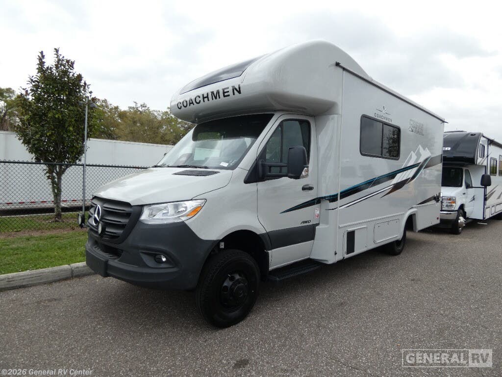 **Coachmen RV Cross Trail XLS Class C diesel motorhome 24FL highlights:** - Bunk Over Cab - Full Bed - 24x32 Shower - Outside TV Pack your bags and gas up this motorhome for an adventure of a lifetime with your spouse! You will get a good night's rest on the corner 52" x 80" full bed, and you can even bring a couple extra guests to sleep on the 36" x 76" bunk over cab. Keep everyone's bellies filled with delicious home cooked meals prepared on the two burner cooktop, convection microwave, 6.2 cu. ft. refrigerator, and countertop extension. Clean up after a fun day of adventures in the rear corner bathroom with the shower and store your toiletries in the medicine cabinet. There is even an outside TV for you to watch the big game underneath the power awning! Each one of these eco-friendly Coachmen RV Cross Trail XLS Class C diesel motorhomes are ready for an adventure when you are! They are built on a Mercedes-Benz Sprinter chassis and automatic 7G-Tronic transmission. With a 3.6kw propane generator and 200W solar panel, you can go off the grid. The exterior LED Halo taillights help others see you better at night and the back up camera helps prevent any bumps or dings. Play your favorite tunes with the touchscreen dash radio and Omni directional TV/FM/AM antenna lets you watch your favorite movies. The towing hitch comes with a 7-way plug for easy hook up. Come see all the other features these units have to offer!