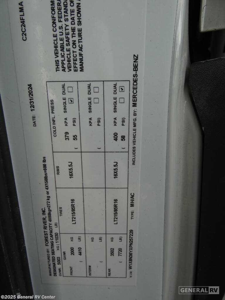 Experience the ultimate in RV living with the 2025 Coachmen Cross Trail EV 24FL. This model combines innovation with comfort, making it perfect for families or adventurous couples. With its efficient Mercedes-Benz I4 engine on a Sprinter 3500 chassis, you'll enjoy a smooth and powerful drive. The RV's sleek design includes a generous 14 ft. powered retractable awning, providing a perfect outdoor space for relaxation or entertaining. Inside, the thoughtfully designed floorplan features a front living area with an 80" convertible sofa, offering ample space for relaxation and additional sleeping options. The center kitchen is equipped with a mid-size electric refrigerator and a two-burner cooktop, making meal prep a breeze. At the rear, you'll find a cozy double bed and a well-appointed bathroom with a 24 x 32 shower, ensuring comfort and privacy. With a sleeping capacity of up to five, this RV is ideal for family getaways. Whether you're setting out for a weekend escape or an extended road trip, the Cross Trail EV 24FL ensures you travel in style and comfort. For more information or to see this model in person, visit your nearest General RV dealership.
