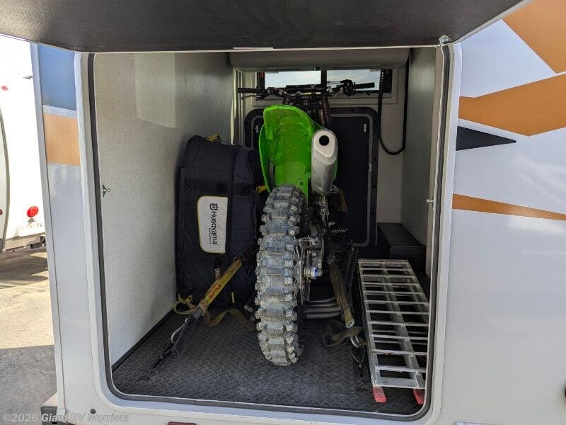 - Smart Technology & Comfort: Equipped with an interior/exterior Smart TV, WiFi Ranger, and large sliding tinted windows for a connected, airy feel.