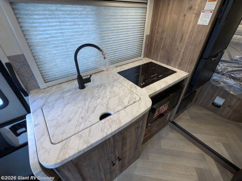 - Premium Amenities: Features air conditioning, a kitchen with a 6.2 cu ft refrigerator, two-burner induction cooktop, and interior/exterior smart TV.