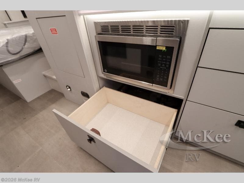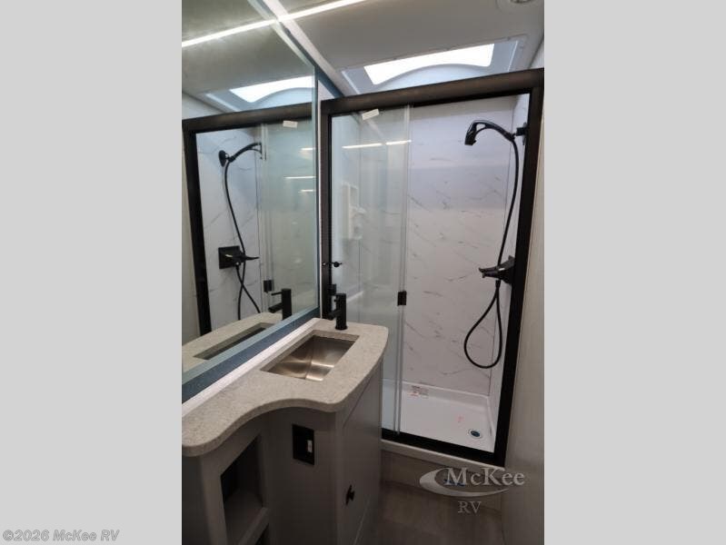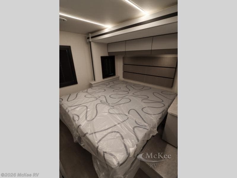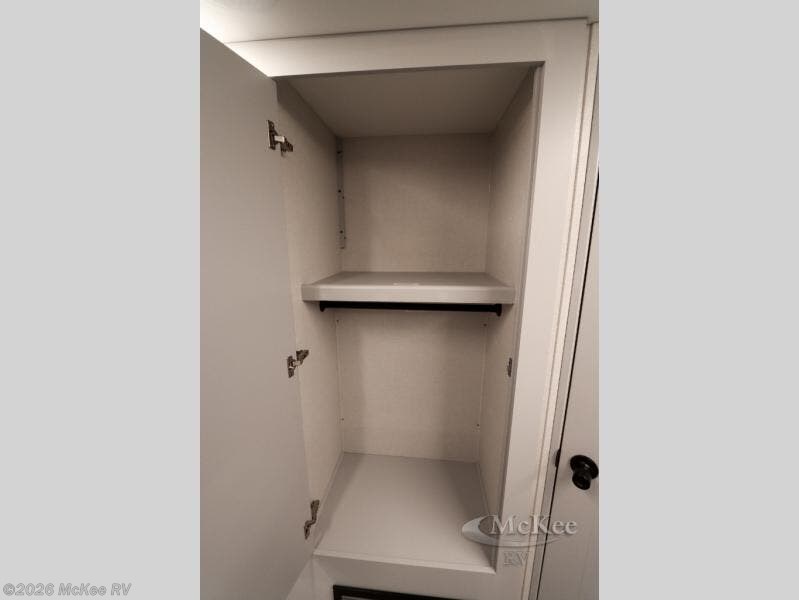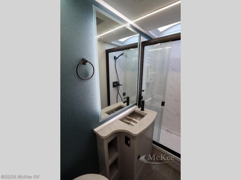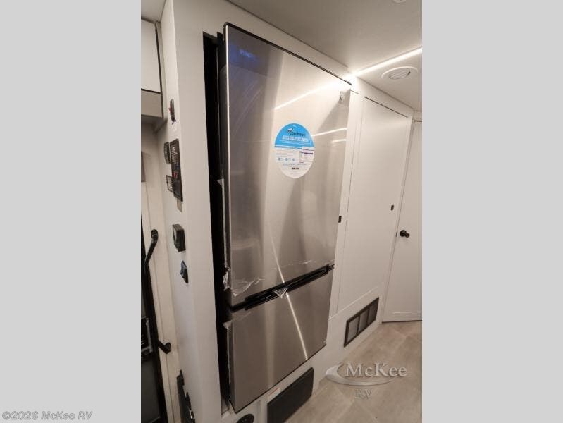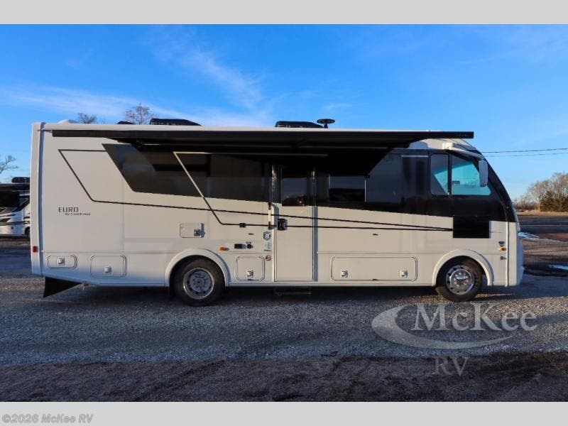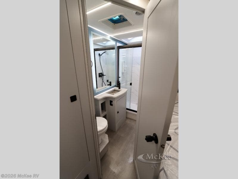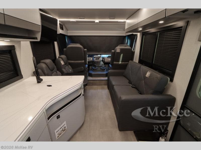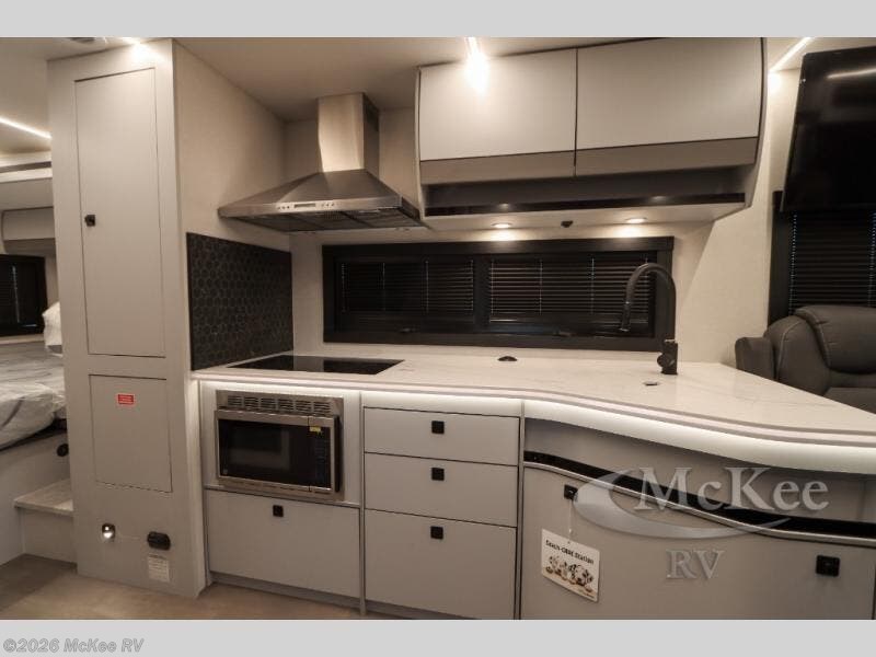 Come see why this coach was voted the Type A Gas Motorhome of the Year for 2024 by RV News and the 2024 Top RV Debut by RV Business! Once you arrive at your destination, the reclining/swivel pilot seats can become a part of the living area where your crew is relaxing on the sofa and two chairs with a table. You'll find an induction cooktop in the kitchen to prepare meals, plus a stainless steel double door refrigerator and a pantry to hold food for the whole week. A king bed slide out in the rear corner bedroom will have you feeling right at home, and there is a bedroom TV to watch movies in bed plus power outlets on both sides of the bed to charge your phone at night. Having a full bath onboard is sure to come in handy, especially with its glass shower door, skylight, and on-demand water heater. This model also includes two closets, one with washer and dryer prep to keep your clothes wrinkle-free plus more storage space throughout for camp gear and necessities!