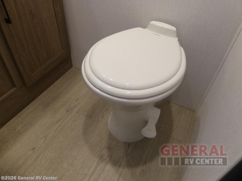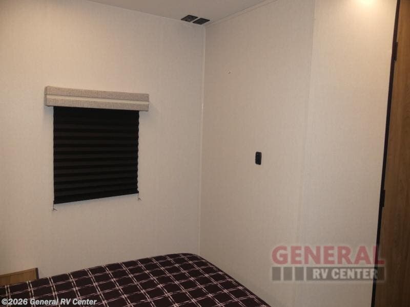 This travel trailer will feel a little more like home since there is a semi-private front bedroom with a queen bed, dual wardrobes, and a bedroom privacy curtain. On the opposite end, the rear kitchen will let you make meals each day on the dual-burner cooktop and microwave oven, plus there is a 12V refrigerator to keep food fresh. A large slide out includes a sofa, dual pantries with end tables, plus a wardrobe with a bench where you can pull your hiking boots off. And a booth dinette provides the perfect place to dine and play games together!