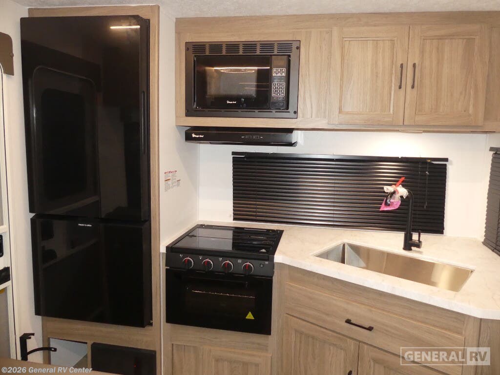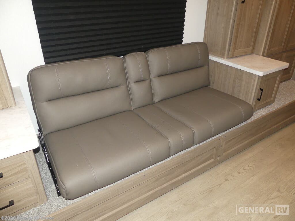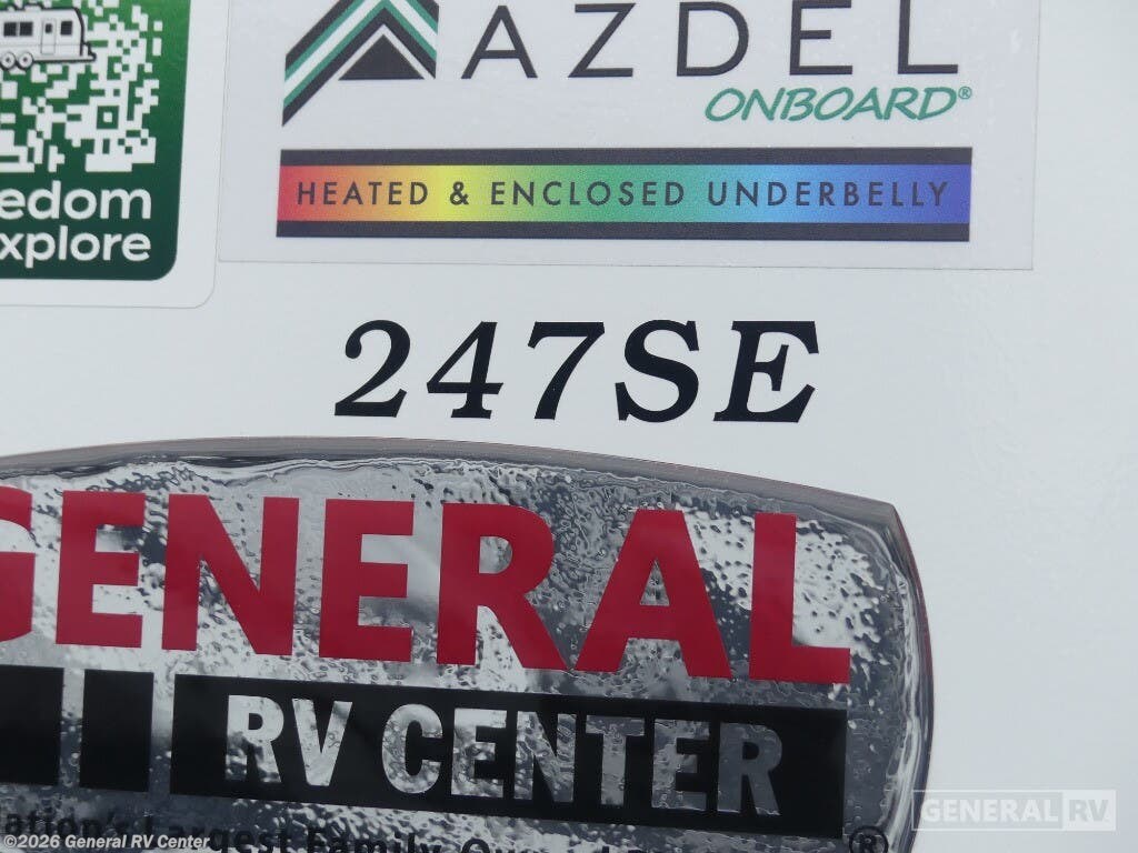 The 2025 Coachmen Freedom Express Select 247SE is your ticket to adventure with comfort and style. This travel trailer, stretching just over 28 feet, is designed to host up to six sleepers, making it perfect for families or friends looking to explore the great outdoors. At the heart of this RV is a spacious center living area, featuring a cozy sofa and a dinette that easily converts for additional sleeping space. The rear kitchen layout is a chef’s delight, equipped with a three-burner cooktop and a full-size electric refrigerator, ensuring you can prepare meals with ease. Step into the front bedroom and discover a luxurious queen bed with ample underbed storage, surrounded by wardrobe space to keep your belongings organized. The center bath offers convenience with a 32-inch radius shower, ensuring comfort during your travels. An 18-foot powered retractable awning invites you to relax outside, shaded from the sun. With a robust cargo capacity and pass-through storage, you’ll have everything you need for your journey. For more details and to experience this model in person, visit your nearest General RV Dealership.