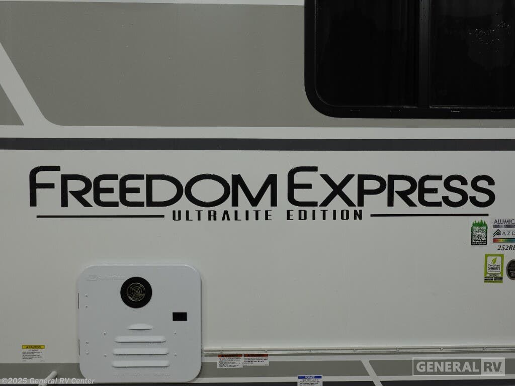 Experience the perfect blend of comfort and adventure with the 2025 Coachmen Freedom Express Ultra Lite 252RBS. This travel trailer is designed with your family in mind, offering ample space to sleep up to six people. The inviting queen bed in the front bedroom promises a restful night, while the convertible dinette and sofa provide additional sleeping options for your guests. The central kitchen is equipped with a mid-size refrigerator and a three-burner cooktop, making meal preparation a breeze whether you're at a campsite or off the beaten path. The interior layout is thoughtfully crafted to maximize space and convenience. The center living area, complete with an entertainment center and optional theater seating, is perfect for relaxing after a day of exploration. The rear bath offers a spacious shower, ensuring you have all the comforts of home on the road. With a 20-foot powered retractable awning, you can enjoy the great outdoors in style, while the full camp kitchen makes outdoor cooking a delightful experience. Built for adventure, the Freedom Express Ultra Lite 252RBS features robust storage options, including pass-through compartments for all your travel gear. With a dry weight of 6,016 pounds and a cargo capacity of 1,584 pounds, this RV is both practical and easy to tow. Discover the joy of the open road with the Freedom Express Ultra Lite, and start making memories that will last a lifetime. For more information, visit your nearest General RV dealership.