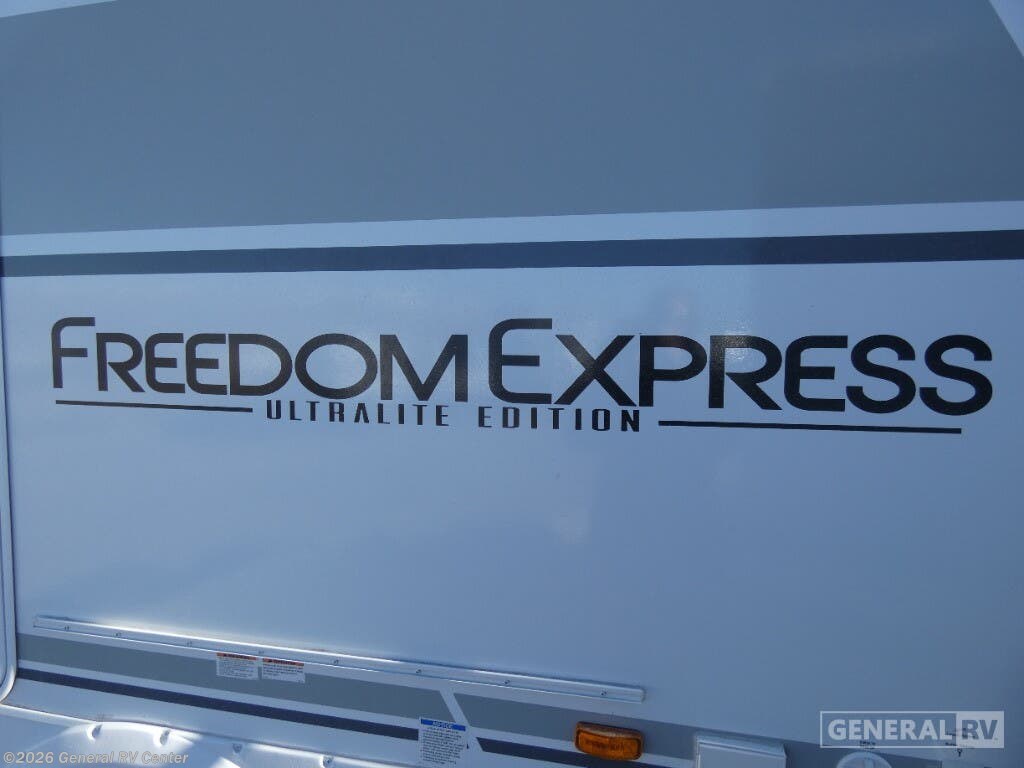 With any Freedom Express Ultra Lite travel trailer by Coachmen you will appreciate quality construction materials, such as vacuum bonded walls with Azdel composite, a 3/4 gel coated fiberglass cap with an automotive glass windshield, and a heated enclosed underbelly. Each model also features Tufflex PVC roofing, front rock guard, and E-Z Lube axles for smooth towing. Inside, you'll find kitchen backsplash, hidden hinge cabinetry, and wear-resistant vinyl flooring throughout. The power tongue jack included with the Ultra Lite Express Package will make set-up a breeze, and each model includes back-up camera prep and they are Freedom solar ready if you plan to go off-grid. Enjoy lightweight camping with a Freedom Express Ultra Lite travel trailer today!