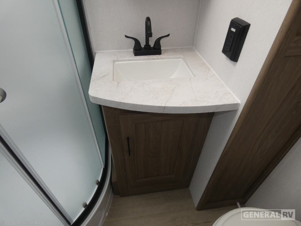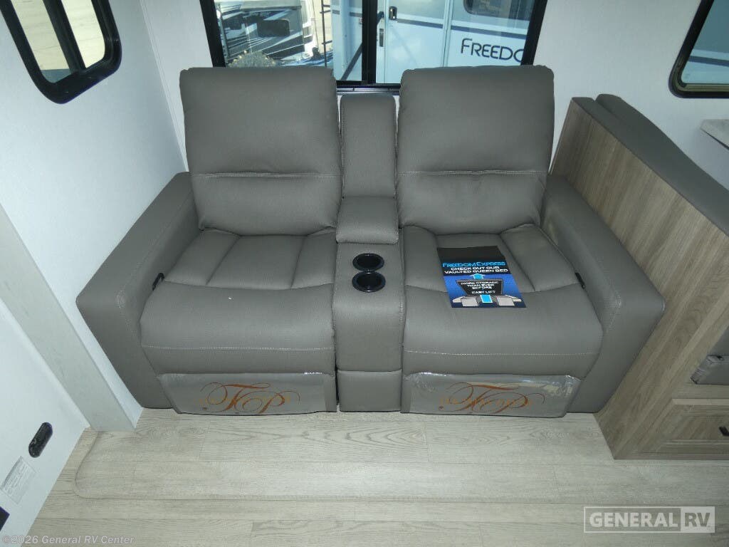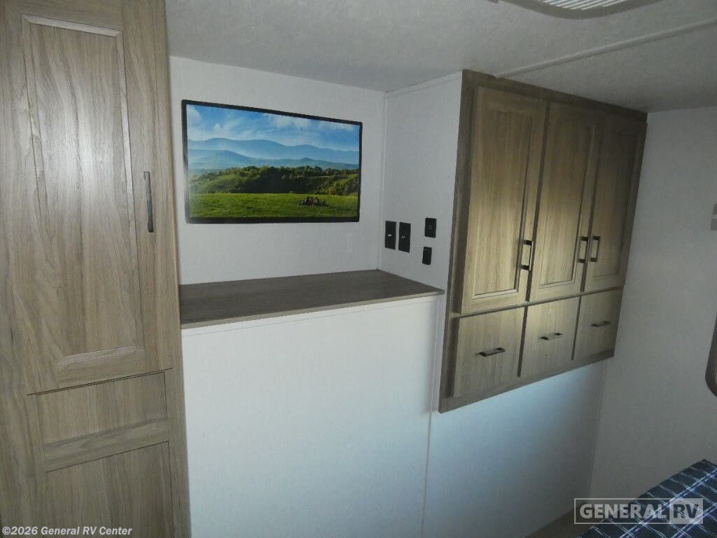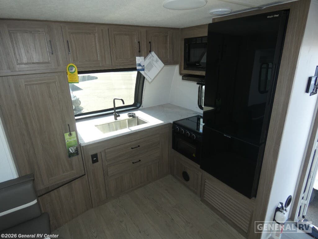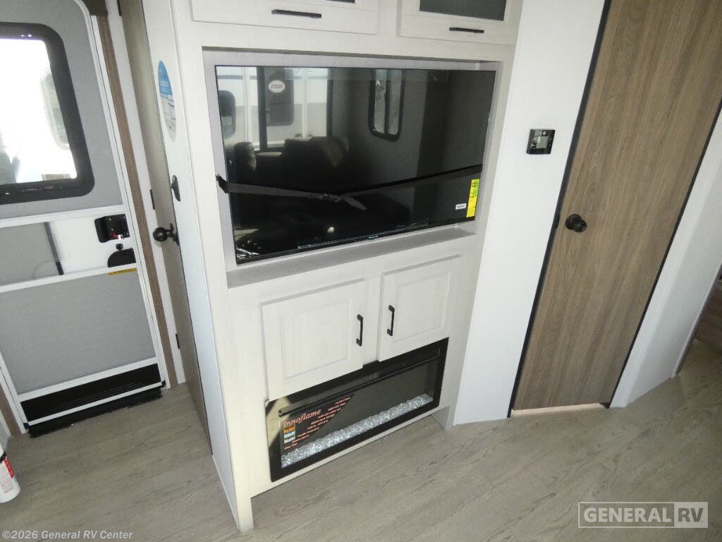 Comfort comes easy in this front kitchen travel trailer for four! You will love the rear master bedroom with its king bed slide out, spacious wardrobe, and a private entrance into the dual entry bath. There is a sofa that sits directly across from the fireplace and entertainment center, or you can choose the optional theater seat or optional hide-a-bed sofa in place of the standard sofa. The front kitchen features tons of counter space, an 8 cu. ft. double door refrigerator, plus a large pantry for dry good and snacks. There is also a pantry/closet just as you enter the trailer that will be perfect for shoes and jackets!