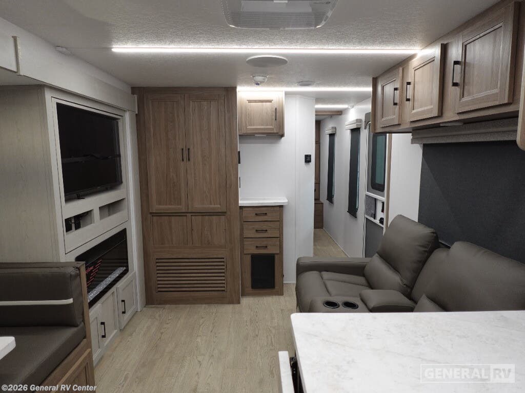 Experience the perfect blend of comfort and adventure with the 2025 Coachmen Freedom Express Ultra Lite 274RKS. This travel trailer is designed to be your home on the road, offering a spacious and inviting layout that can comfortably sleep up to six people. The rear kitchen floorplan is a culinary enthusiast’s dream, featuring a mid-size refrigerator, three-burner cooktop, and ample pantry space to store all your essentials. Imagine enjoying a cozy evening by the fireplace, or hosting a delightful meal at the 76" dinette, all under the comfort of the 18 ft. powered retractable awning. The center living area is thoughtfully designed for relaxation and entertainment, with a theater seat and a convertible sofa that ensures everyone has a place to unwind. The front bedroom boasts a luxurious queen bed with vaulted underbed storage, perfect for keeping your space tidy and organized. The center bath offers convenience with its 30" x 36" shower and linen storage. With a cargo capacity of 2,134 lbs, you’ll have no trouble bringing along all your gear for the journey. For those who love to cook outdoors, the pull-out camp kitchen is an added bonus, making this RV a true gem for adventurers. For more details, visit your nearest General RV dealership.