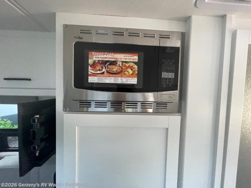 Pack your bags and load up into this motorhome for a fun vacation! The motorized rear sofa lays flat at the push of a button and can be combined with the two jump seats to create a sleeping area for a good night's rest. The wardrobe provides enough hanging and drawer storage to organize your items. Start your mornings off right by grabbing some eggs from the refrigerator with pull-out freezer drawer then fry them up on the two burner cooktop. Now that your belly is full, you can get cleaned up in the wet bath with sink and shower that has an Oxygenics Fury handheld shower head with on/off switch. Stay entertained even when it's raining with the 24" LED Smart TV! Available with optional 4x4 chassis. See dealer for details.