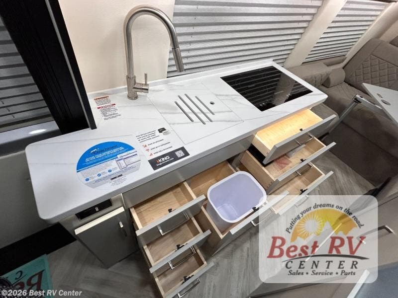 - CONVENIENCE PACKAGE -RVQG2500I 2.5KW LP GENERATOR (2.5KW LP GENERATOR NOT INCLUDED W/LI3 OPT), PWR ARMLESS AWNING W/MOTION SENSOR & LED LIGHTING, REAR SCREEN SHADE, TRUMA COMBI FURNACE/WATER HEATER, 12V MACERATOR, CONVECTION MICROWAVE, FANTASTIC FAN W/RAIN SENSOR, INDUCTION COOKTOP (24FL DUAL INDUCTION COOKTOP), SOLID SURFACE COUNTER TOPS, ALUM WHEELS, SUMO SPRING SUSPENSION (STD ON 2X4), SHOWER MISER, 30 AMP SMART PLUG ELECTRONICS PACKAGE - 12V 24" LED TV,
