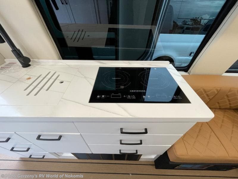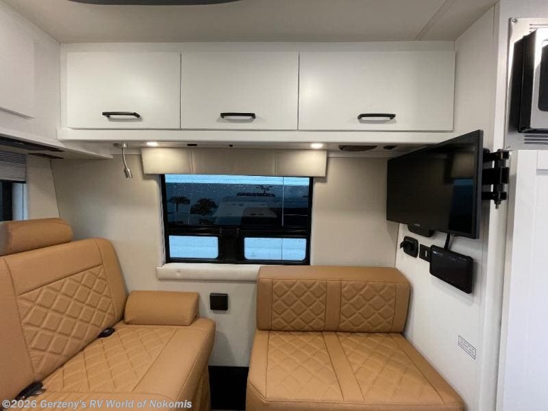 Pack your bags and load up into this motorhome for a fun vacation! The motorized rear sofa lays flat at the push of a button and can be combined with the two jump seats to create a sleeping area for a good night's rest. The wardrobe provides enough hanging and drawer storage to organize your items. Start your mornings off right by grabbing some eggs from the refrigerator with pull-out freezer drawer then fry them up on the two burner cooktop. Now that your belly is full, you can get cleaned up in the wet bath with sink and shower that has an Oxygenics Fury handheld shower head with on/off switch. Stay entertained even when it's raining with the 24" LED Smart TV! Available with optional 4x4 chassis. See dealer for details.