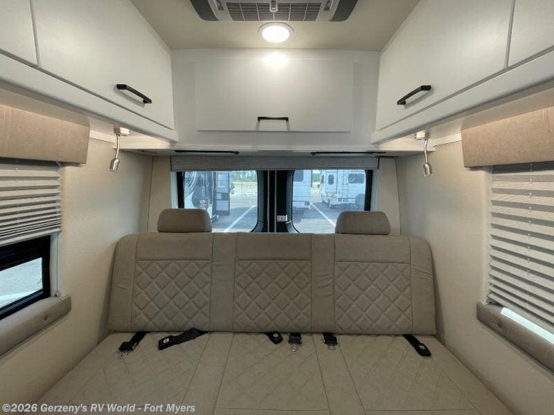 Experience all of the colors of the season with this motorhome! With four captain's chairs, everyone will have a comfortable place to sit while you travel and you could even get some work done with the removable table in between them all. The full galley has everything you need to prepare home cooked meals like a single burner cooktop and a refrigerator. Stay squeaky clean with the wet bath including a sink and shower that has an Oxygenics Fury handheld shower head with on/off switch. Above one of the jump seats there is an overhead wardrobe and a 24" LED Smart TV. The rear sofa can fold out to create a sleeping area in combination with the two jump seats so you can have a good night's rest each night! Available with optional 4x4 chassis. See dealer for details.