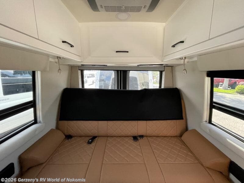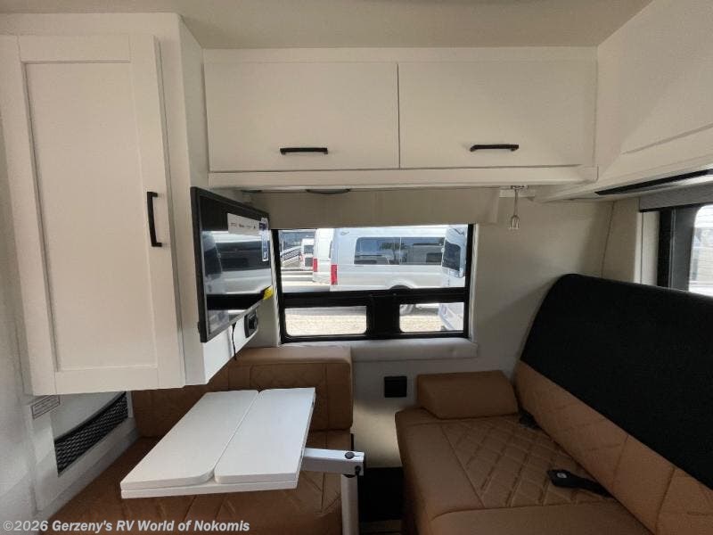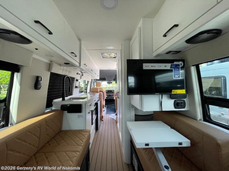 Experience all of the colors of the season with this motorhome! With four captain's chairs, everyone will have a comfortable place to sit while you travel and you could even get some work done with the removable table in between them all. The full galley has everything you need to prepare home cooked meals like a single burner cooktop and a refrigerator. Stay squeaky clean with the wet bath including a sink and shower that has an Oxygenics Fury handheld shower head with on/off switch. Above one of the jump seats there is an overhead wardrobe and a 24" LED Smart TV. The rear sofa can fold out to create a sleeping area in combination with the two jump seats so you can have a good night's rest each night! Available with optional 4x4 chassis. See dealer for details.
