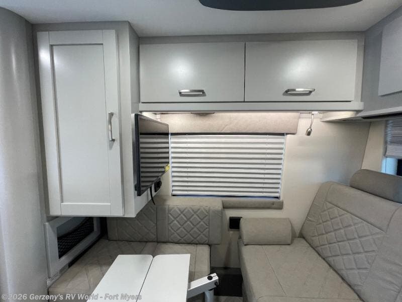 Experience all of the colors of the season with this motorhome! With four captain's chairs, everyone will have a comfortable place to sit while you travel and you could even get some work done with the removable table in between them all. The full galley has everything you need to prepare home cooked meals like a single burner cooktop and a refrigerator. Stay squeaky clean with the wet bath including a sink and shower that has an Oxygenics Fury handheld shower head with on/off switch. Above one of the jump seats there is an overhead wardrobe and a 24" LED Smart TV. The rear sofa can fold out to create a sleeping area in combination with the two jump seats so you can have a good night's rest each night! Available with optional 4x4 chassis. See dealer for details.
