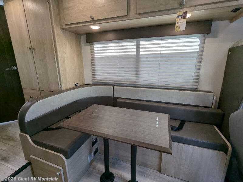 - J-Lounge Dinette: Versatile living area with a J-lounge, pedestal table, and swing-arm 32" Smart TV for dining or relaxing.