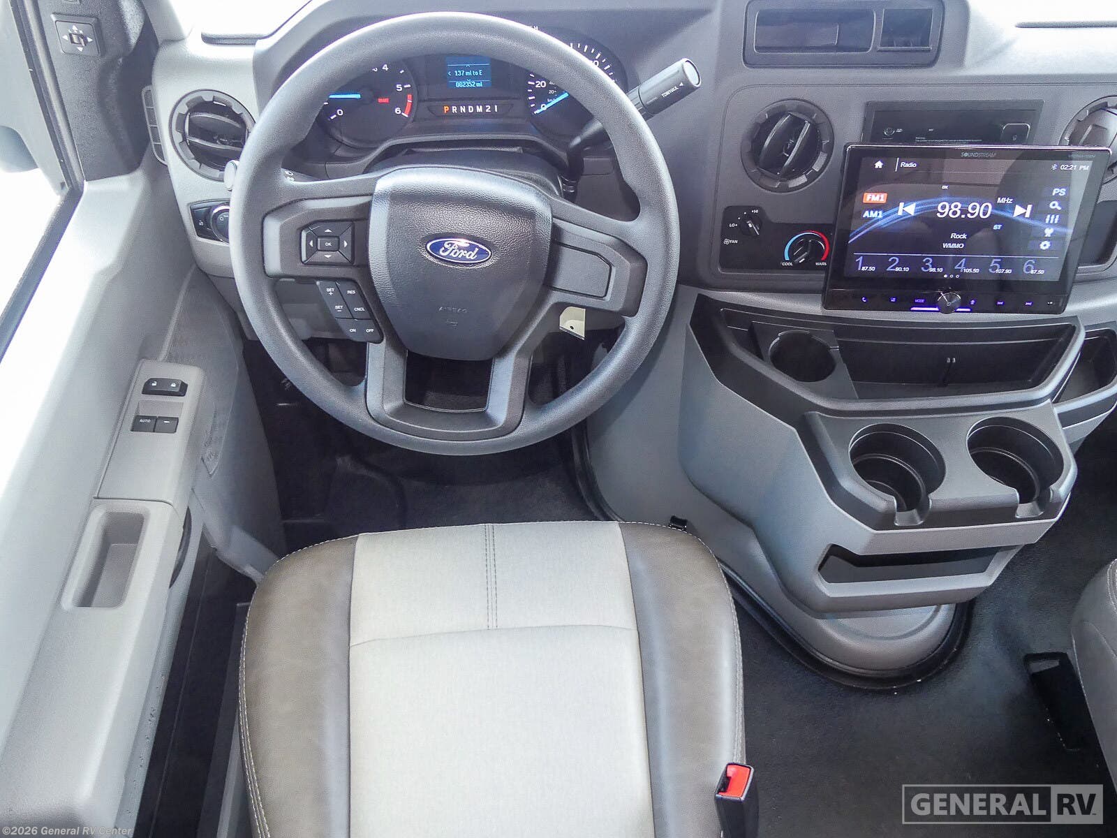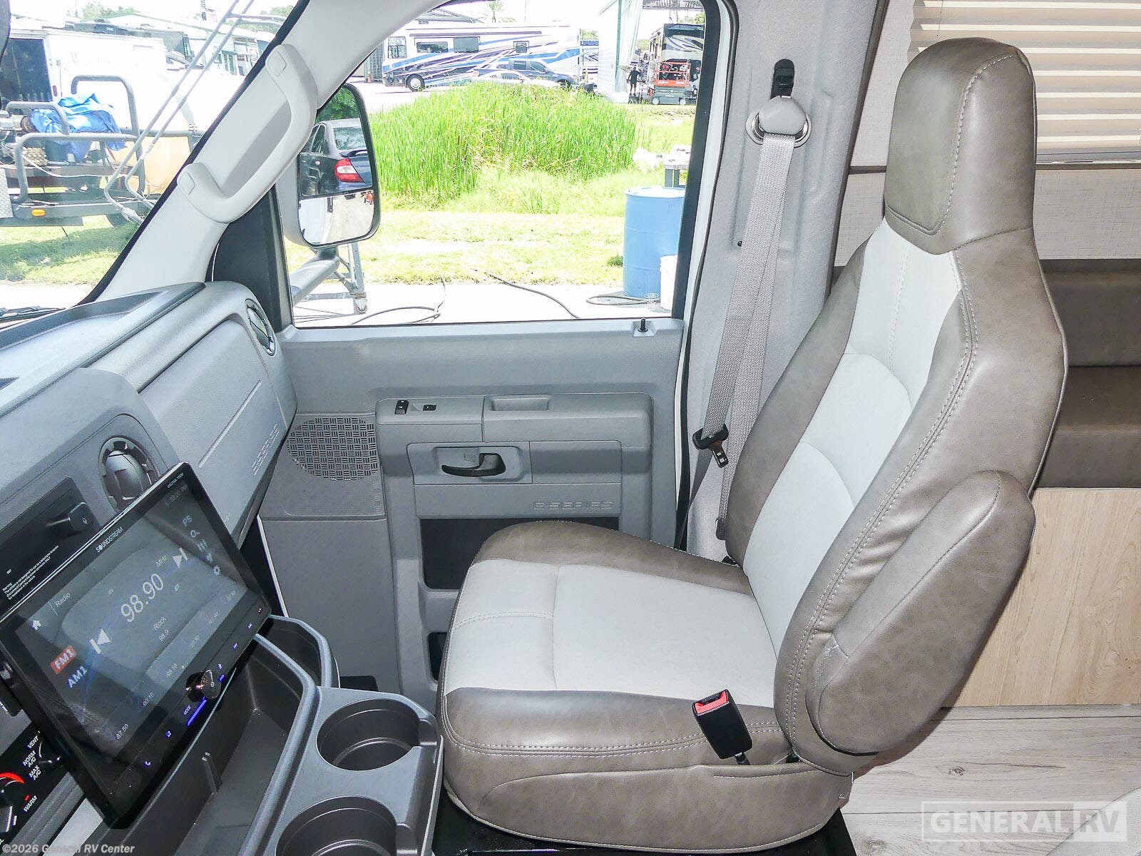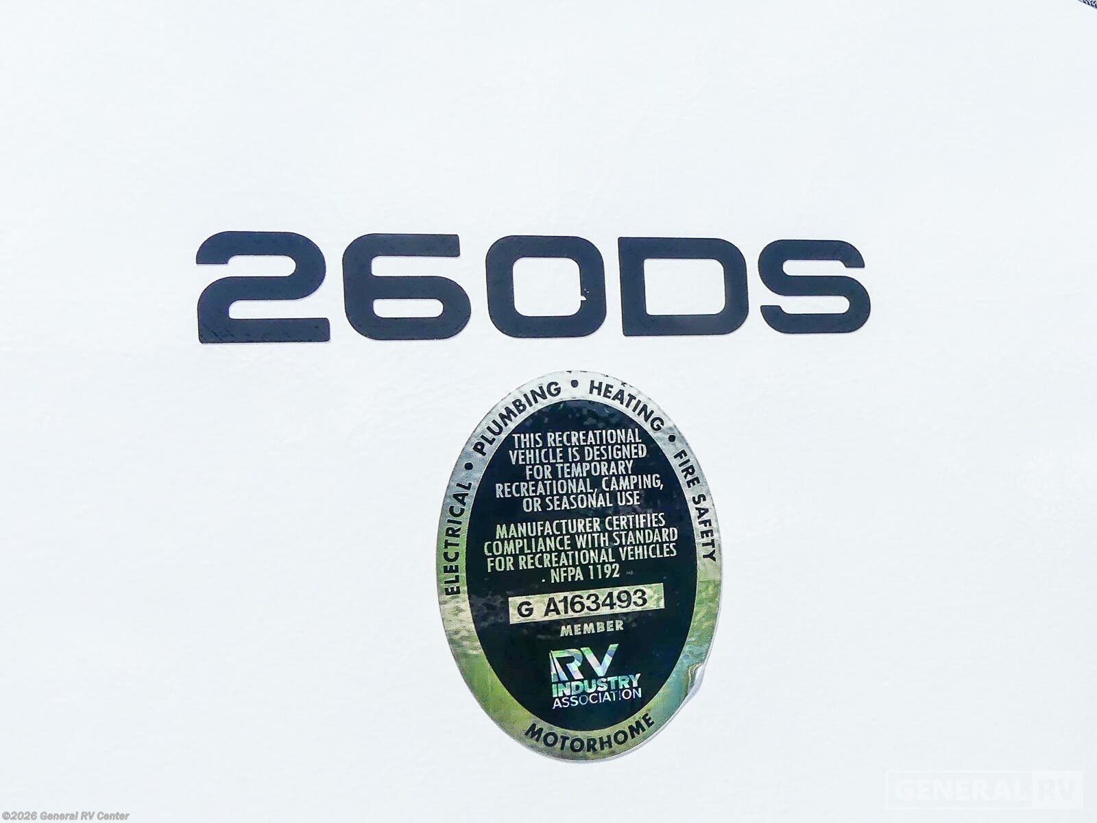 Experience the open road like never before with the 2025 Coachmen Leprechaun 260DS, built on the robust Ford E450 chassis. This RV is your perfect travel companion, offering a blend of comfort, style, and functionality. With the ability to sleep up to six, thanks to a full-size bed, a queen bed, and convertible sleeping area, this motorhome ensures that everyone can join in on the adventure. The spacious interior is thoughtfully designed with a center kitchen and front living area, making it ideal for both cooking and relaxation. The kitchen is equipped with a three-burner cooktop and convection cooking, allowing you to prepare meals with ease. The Leprechaun 260DS also features a rear bath and bedroom, providing a private retreat at the end of the day. The 18-foot powered retractable awning creates a perfect outdoor space, whether you're enjoying a sunny afternoon or a starry night. With a fresh water capacity of 50 gallons and ample storage, you can embark on extended journeys with peace of mind. The optional outside entertainment center adds an extra layer of fun for gatherings or family nights. Discover the joy of travel with this exceptional RV, and for more details, visit your nearest General RV dealership.