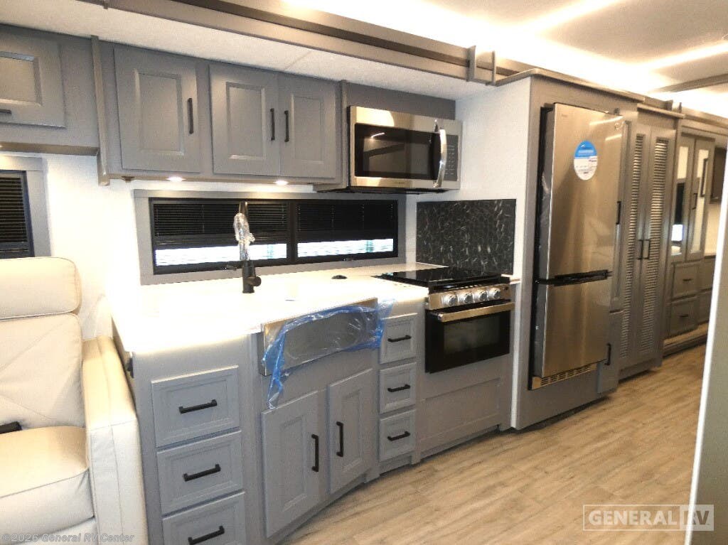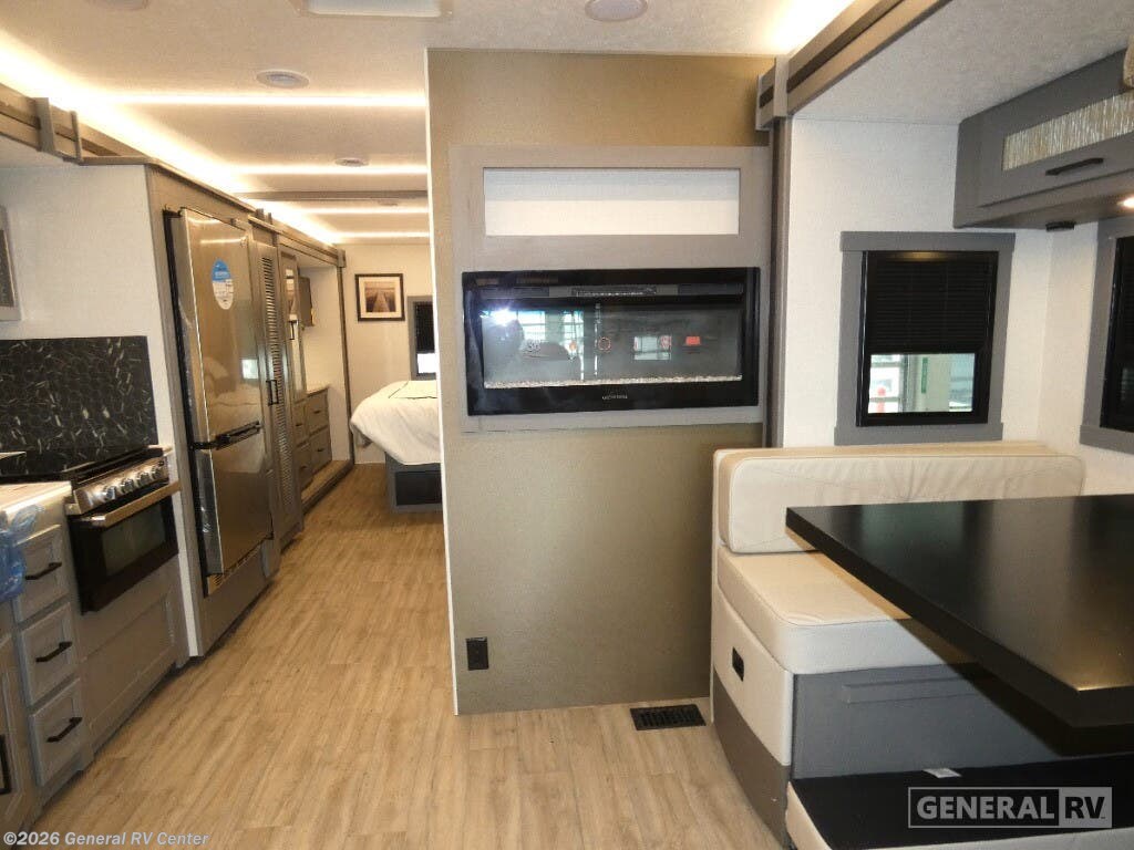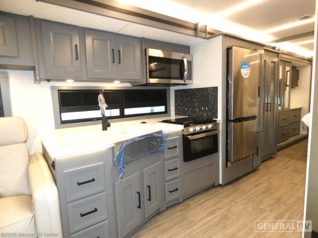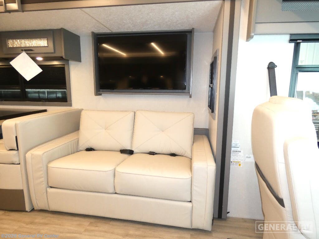 Experience the 2025 Coachmen Mirada 35OS, where luxury meets practicality in a spacious design perfect for family adventures. This motorhome, built on a robust Ford F53 chassis, offers a powerful 335 horsepower engine, ensuring a smooth journey wherever the road takes you. With its 36.83-foot length and two slide-outs, you’ll find ample room to relax and entertain. The interior boasts a front living area with a cozy 68" sofa and a 42" x 78" dinette, perfect for gathering with loved ones. The kitchen, equipped with a three-burner cooktop and full-size electric refrigerator, invites you to create culinary delights on the go. Retreat to the rear bedroom, where a plush king bed awaits, offering a serene escape after a day of exploration. The center bathroom, with a convenient shower, ensures comfort and privacy. This model is thoughtfully designed with a washer/dryer prep area, making extended trips a breeze. Outside, enjoy the 20 ft. powered retractable awning, providing shade and comfort for outdoor relaxation. With a towing capacity of 8,000 lbs, bring along your favorite toys or a small vehicle for even more adventure. Visit your nearest General RV dealership to explore the Coachmen Mirada 35OS and start planning your next great journey!