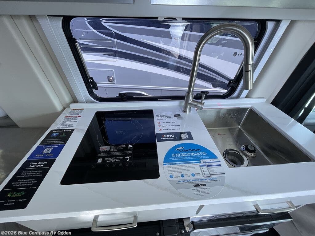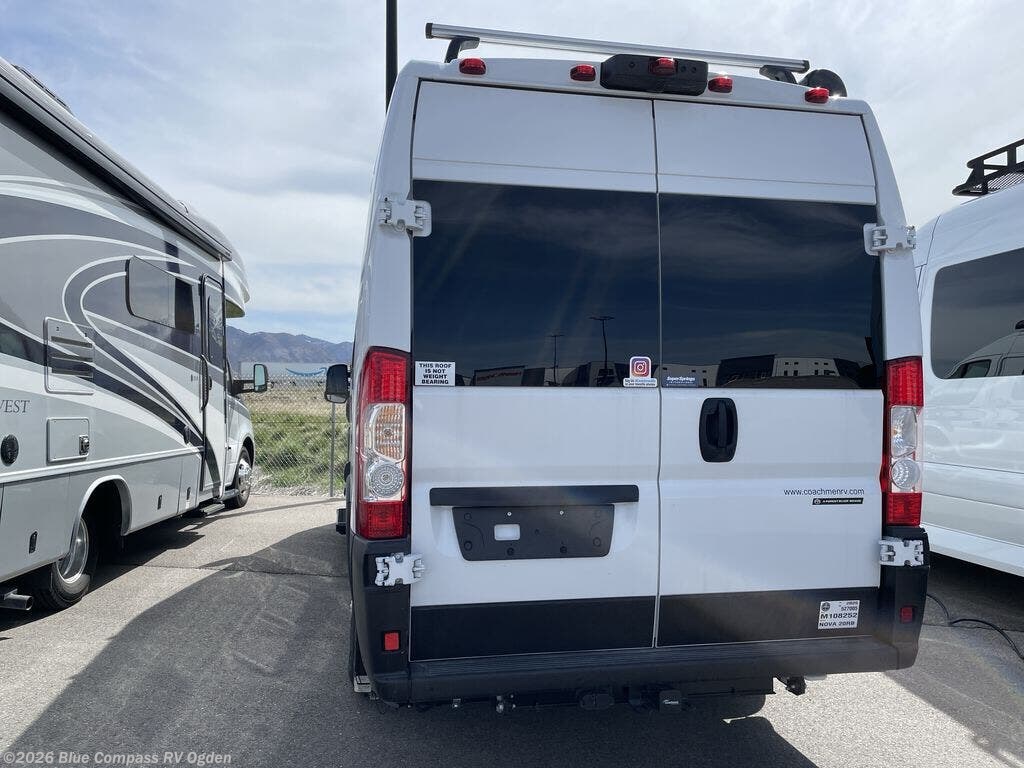 Each Nova Class B gas motorhome by Coachmen features Sumo Spring front and rear suspension for a smooth ride. Each unit is built on a Ram ProMaster 3500 chassis, and is powered by a 3.6L V6, 24 valve engine with 280 HP. You will appreciate the innovative Firefly multiplex system, the Sure Level tank sensors, and the 3 Group 31, 115AH AGM batteries for added power, as well as a new 24" LED Smart TV to help keep you entertained on long trips. Inside, you'll find solid hardwood cabinetry, a fiberglass shower verses the competitors ABS shower, a remote control MaxxAir fan with a rain sensor, and many more comforts to make you feel right at home. There is also a Truma Aventa 13,500 BTU A/C with three speeds, a dehumidifier, and night mode to ensure your comfort throughout each trip! An optional Li Lithium Battery System can be added which features a 640 amp-hour lithium battery, a Bluetooth battery management system, a Xantrex XC Pro 3,000W inverter/charger, and more features for off-grid capability!