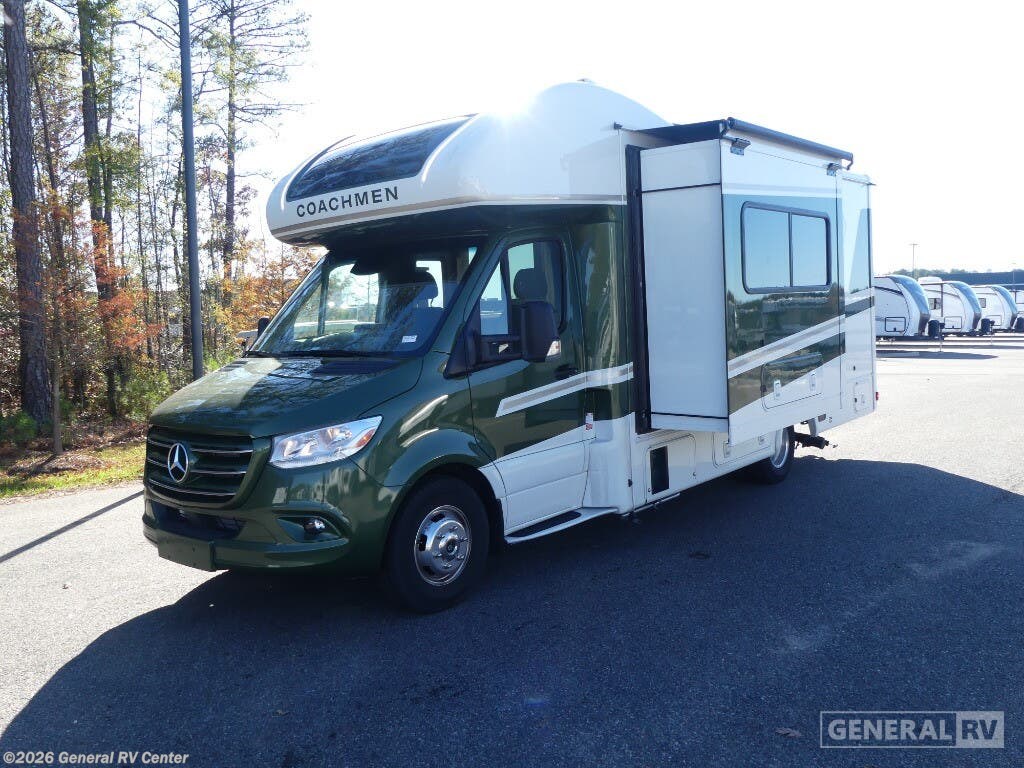 Experience the freedom of the open road with the 2025 Coachmen Prism Select 24MB, where comfort meets versatility. This compact yet spacious RV is built on the reliable Mercedes-Benz Sprinter 3500 chassis, powered by a robust I4 diesel engine that delivers 208 horsepower and 322 torque, ensuring a smooth and efficient drive. With a length of 25 feet and a single slide-out for extra space, this motorhome is designed for those who crave adventure without sacrificing luxury. Inside, the well-appointed floorplan features a front living area with a cozy fireplace, perfect for unwinding after a day of exploration. The cleverly designed center kitchen includes a three-burner cooktop and convection cooking, making meal preparation a breeze. At the heart of this RV is a versatile Murphy bed that transforms the space from a comfortable sleeping area to a spacious living room. The rear bath offers privacy and convenience with a shower enclosed by a curtain. Plus, it's prepped for a washer/dryer, adding a touch of home to your travels. With a 32-gallon fresh water capacity and a 14-foot powered retractable awning, your adventures are only limited by your imagination. For more details or to see this beauty in person, visit your nearest General RV dealership. Your next adventure awaits!