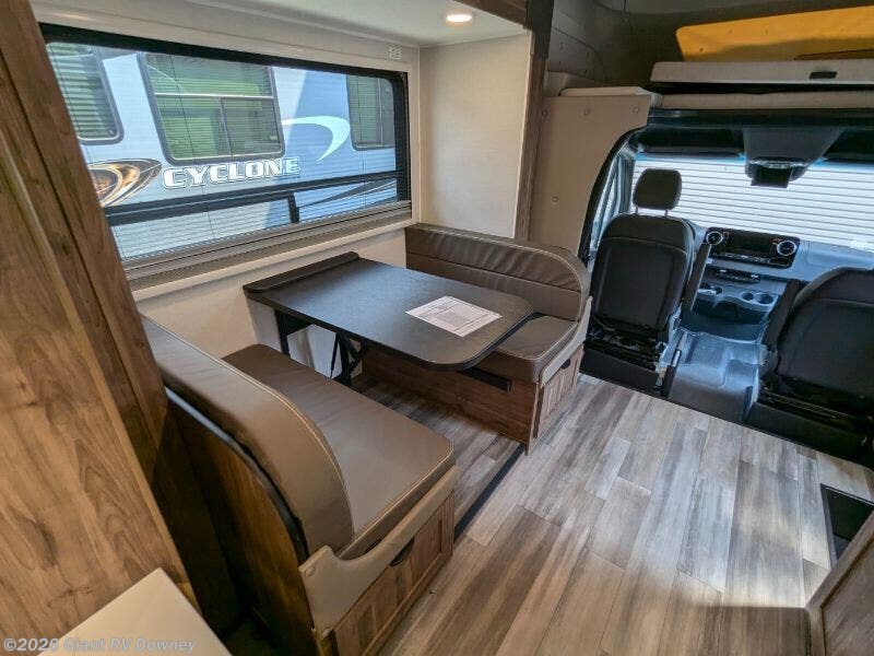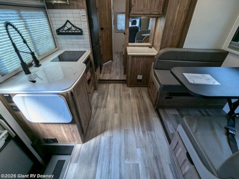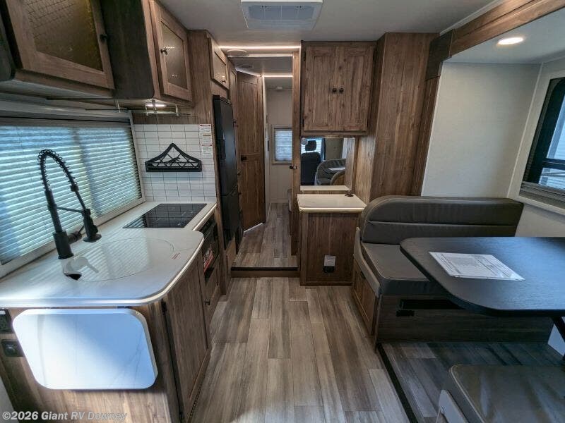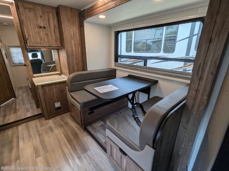 - Booth Dinette Slide: Spacious living area with a booth dinette (or optional recliners) and 32" Smart TV for cozy gatherings.