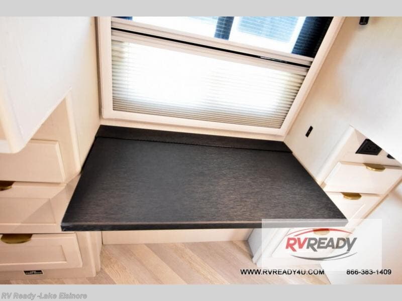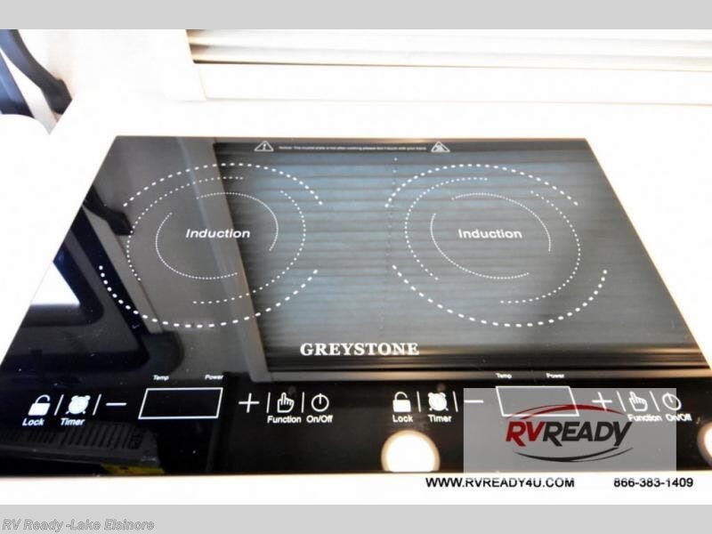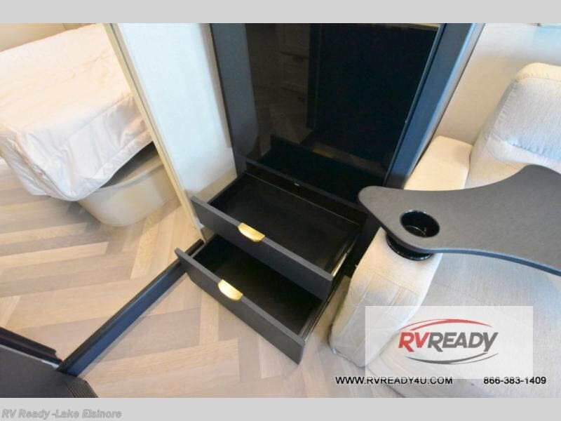 You'll love traveling in this luxury coach with friends or family. Once you stop for the day, you can make dinner on the two burner induction cooktop, grab a cold drink from the refrigerator, and relax on the sofa with recliners. The master bedroom includes a queen bed slide out, dual wardrobes, and a workstation if you need to get some work done. And don't overlook the full rear bath, complete with a 24" x 36" shower, toilet, sink, and linen closet for clean towels.