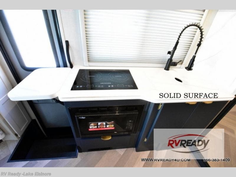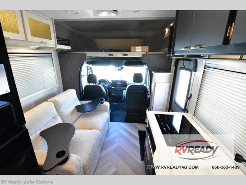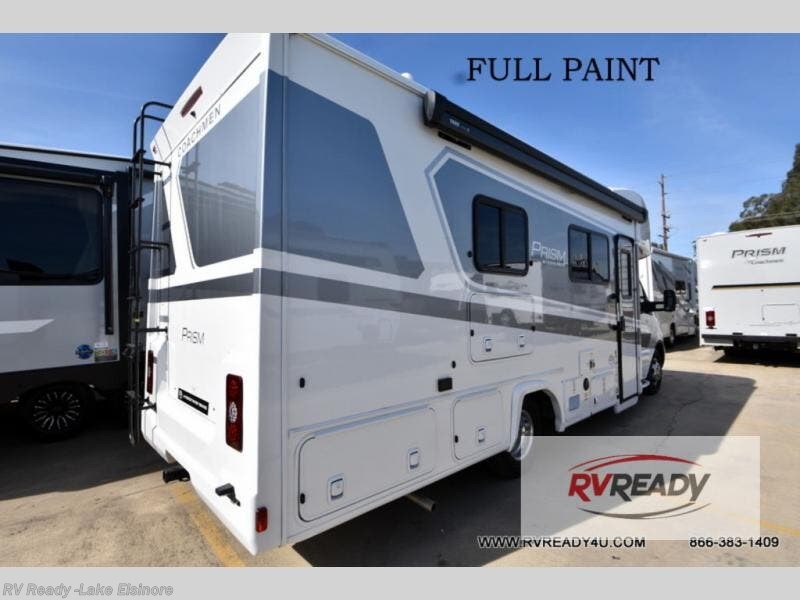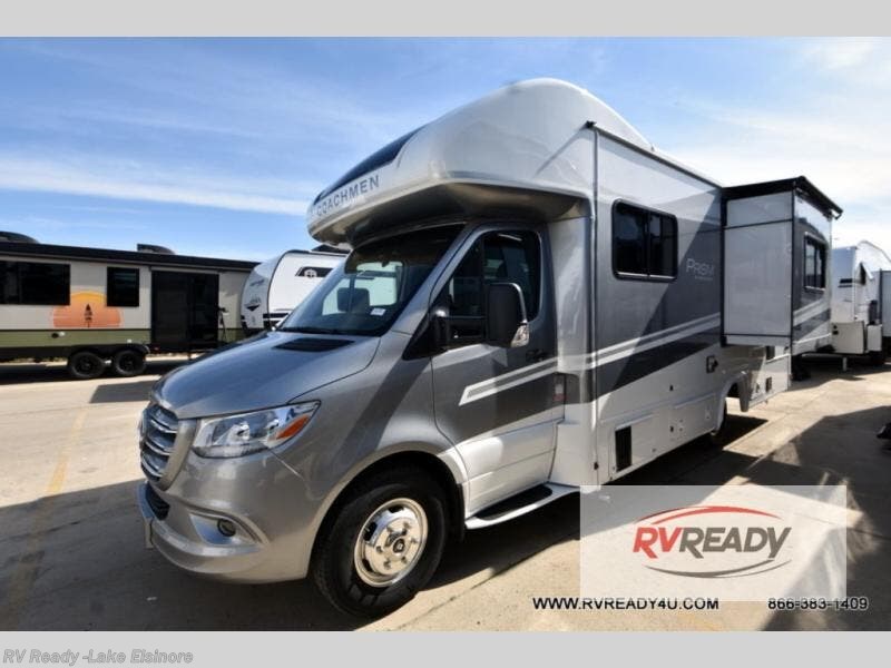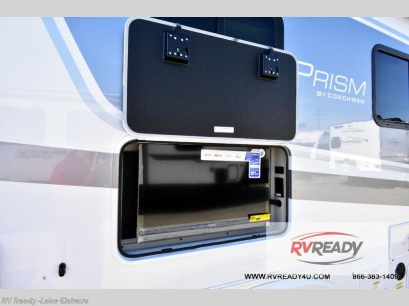 With any of the Prism Elite Class C diesel motorhomes, the Coachmen legacy of upscale luxury with Mercedes-Benz drivability is found throughout. With the aerodynamic and stylish molded fiberglass front and rear caps plus three full body paint choices, you are sure to turn heads as you travel to your destination. There is also solar prep outside, along with exterior storage and an armless awning. The interior provides solid surface countertops, large closets to store your things, day/night shades for added privacy, plus a soft touch ceiling. A Truma Aqua Go on-demand water heater will provide endless hot showers and the Even Cool A/C ducting system will keep you cool all summer long. Choose a reliable and luxurious Prism Elite today!