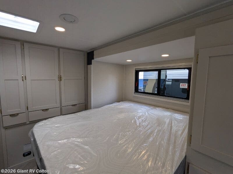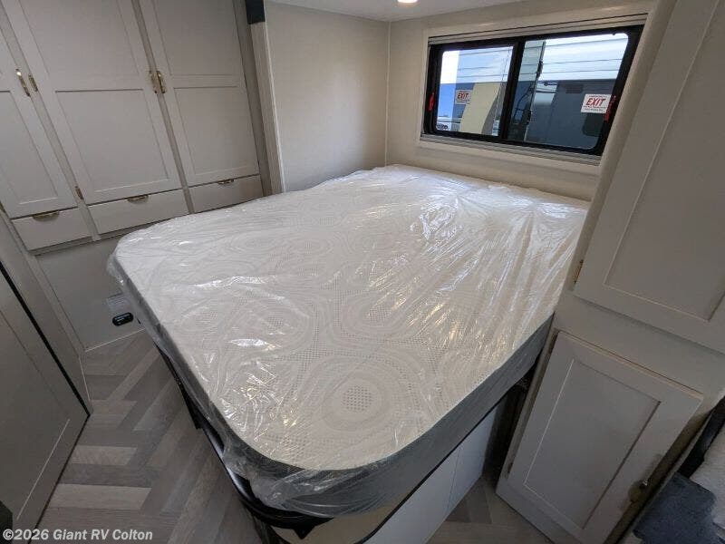 - Queen Bed: Rear bedroom with a 60" x 80" queen bed, large closet, and USB charging, sleeping up to 5 with a 36" x 76" bunk over cab.