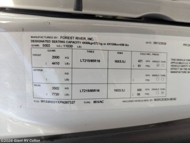 Discover adventure with the 2025 Coachmen Prism Select 24FSS, a luxurious Class C diesel motorhome built for versatility. Available at Giant RV, this Prism Select 24FSSrides on a Mercedes-Benz Sprinter 3500 chassis with a 2.0L 4-cylinder diesel engine, delivering 208HP and a 7,500 lb. towing capacity. With a full-wall slide and modern amenities, it’s perfect for RV camping