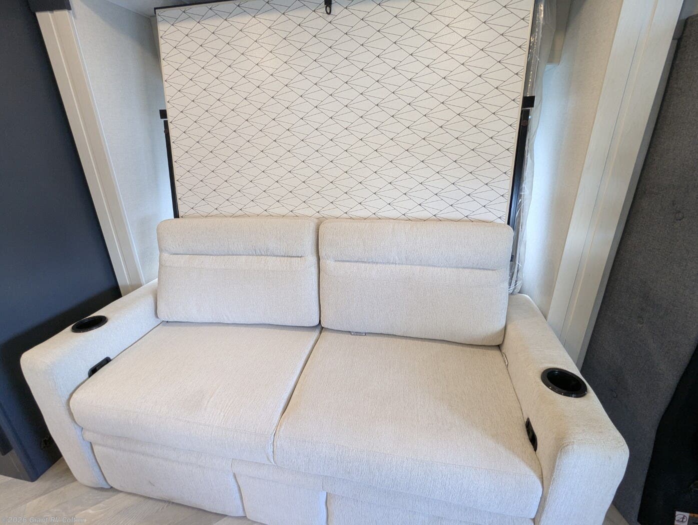 - Murphy Bed Slide: 60" x 74" bed converts to a 62" sofa, plus a 45" x 76" cab-over bunk, sleeping up to 3.