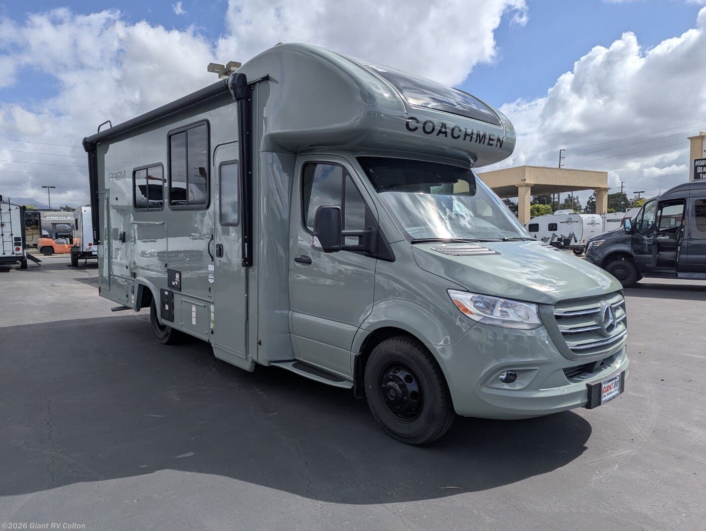 Unleash your wanderlust with the 2025 Coachmen Prism Select 24MB, a compact Class C diesel motorhome built for luxury and adventure. Available at Giant RV, this Prism Select 24MB rides on a Mercedes-Benz Sprinter 3500 chassis with a 2.0L 4-cylinder diesel engine, delivering 208HP and a 7,500 lb. towing capacity. With a Murphy bed slide and upscale features, it’s perfect for RV camping.