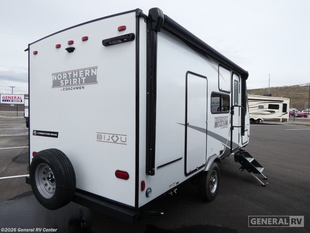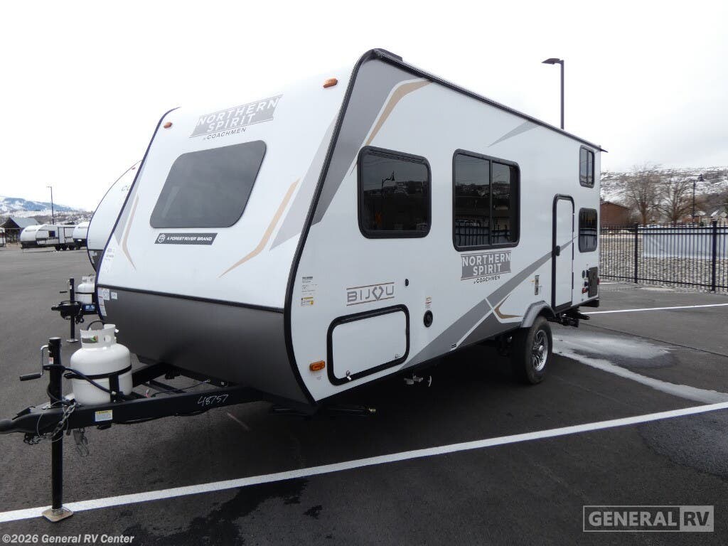 Embrace the open road with the 2025 Coachmen Northern Spirit Bijou 17BHB, a compact yet spacious travel companion perfect for families or groups of up to six adventurers. This thoughtfully designed RV maximizes every inch of its 21.75-foot length, offering a cozy full-size bed and a convertible dinette for versatile sleeping arrangements. The bunkhouse provides additional sleeping space, making it an ideal setup for families with kids or guests. With a dry weight of just 3,266 pounds, it’s easy to tow, ensuring you can explore without limits. Inside, the center kitchen and living area create a welcoming space for meals and relaxation. The kitchen is equipped with a two-burner cooktop and a mid-size refrigerator, ready to handle all your culinary needs. The rear bath, complete with a shower curtain, offers convenience and privacy. Outside, the 14-foot powered retractable awning extends your living space into the great outdoors, perfect for enjoying a sunny day or a starry night. With ample storage, including pass-thru compartments, this RV ensures you have everything you need for your journey. Visit your nearest General RV dealership to explore the Northern Spirit Bijou 17BHB and start your adventure today!