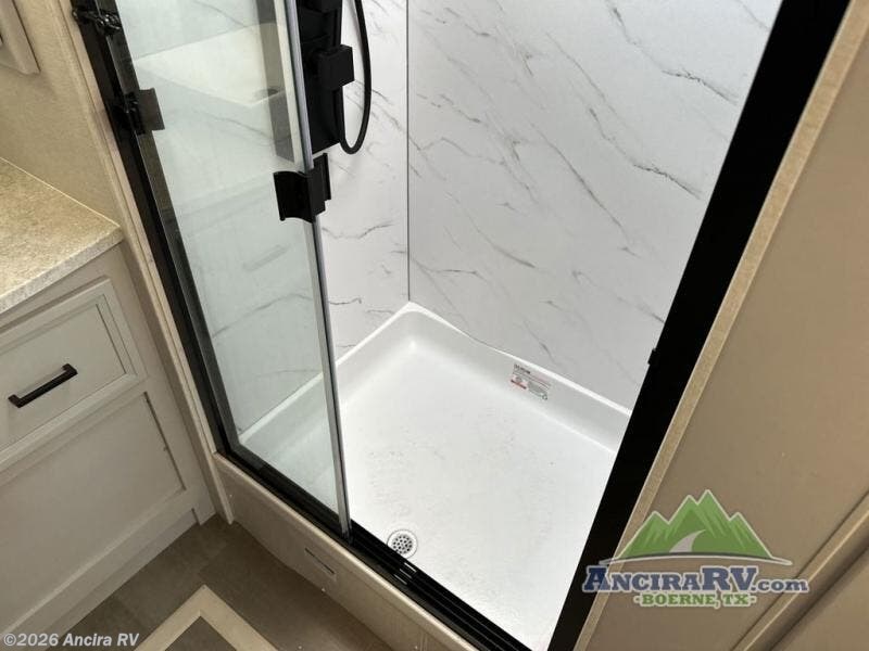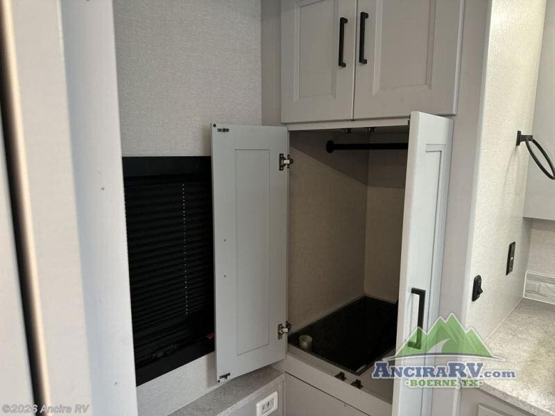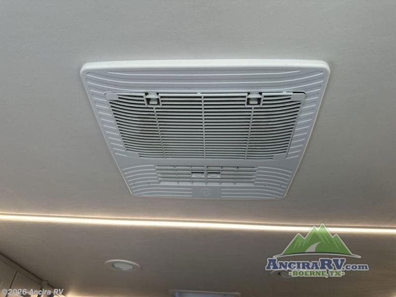 Wow! Check out this motorhome with a full rear bath, a convenient half bath, and sleeping space for six! There is a cockpit table with cupholders for your drinks, a booth dinette where you can dine together, and a 78" sofa bed across from the fireplace and LED TV. And the littles ones will love the drop-down overhead bunk. The chef of your group can prepare meals on the three burner range or in the stainless steel over the range microwave. The master bedroom is comfortable with its king bed slide out and residential style headboard, plus there are USB ports on both sides of the bed and a CPAP station above the bed for convenience.