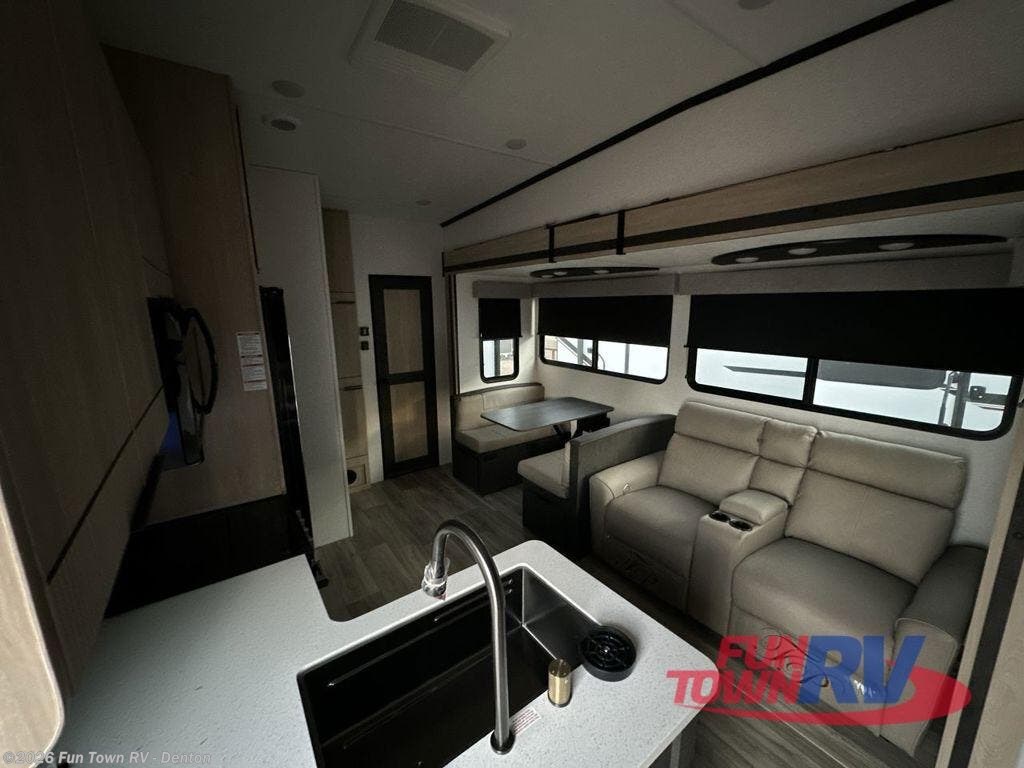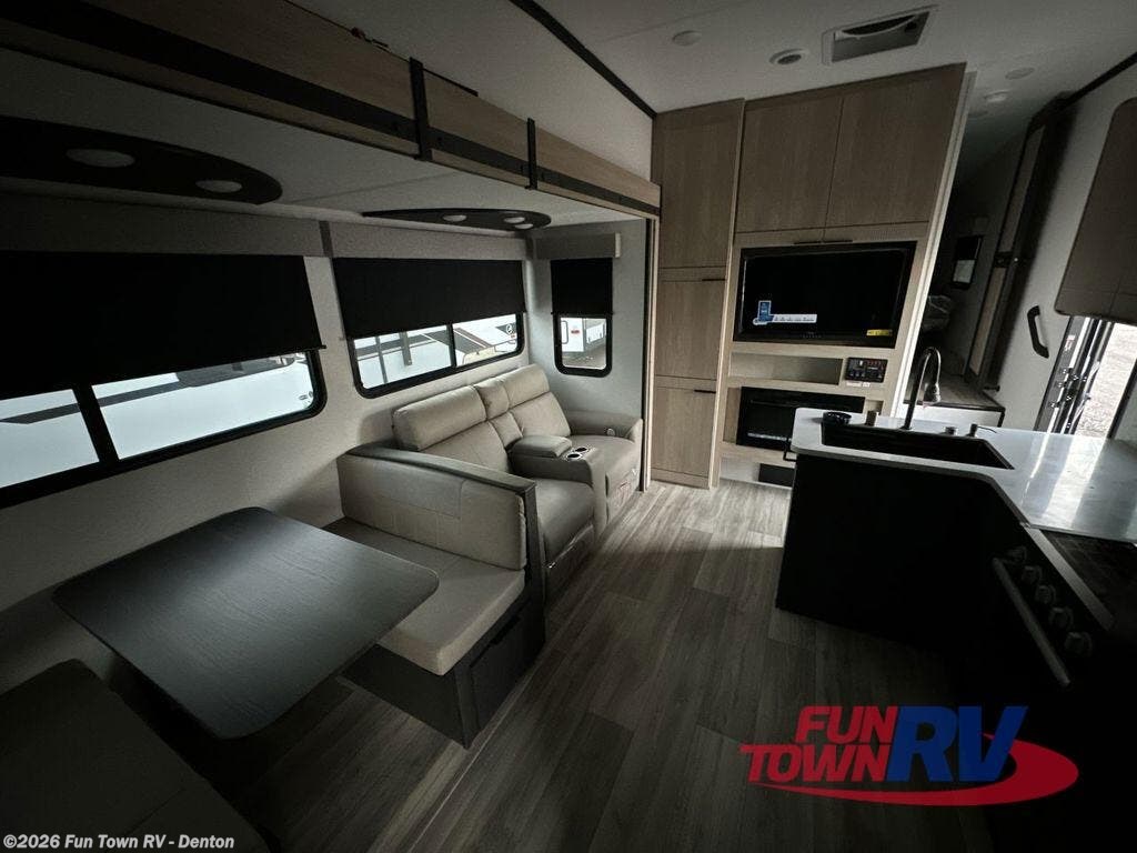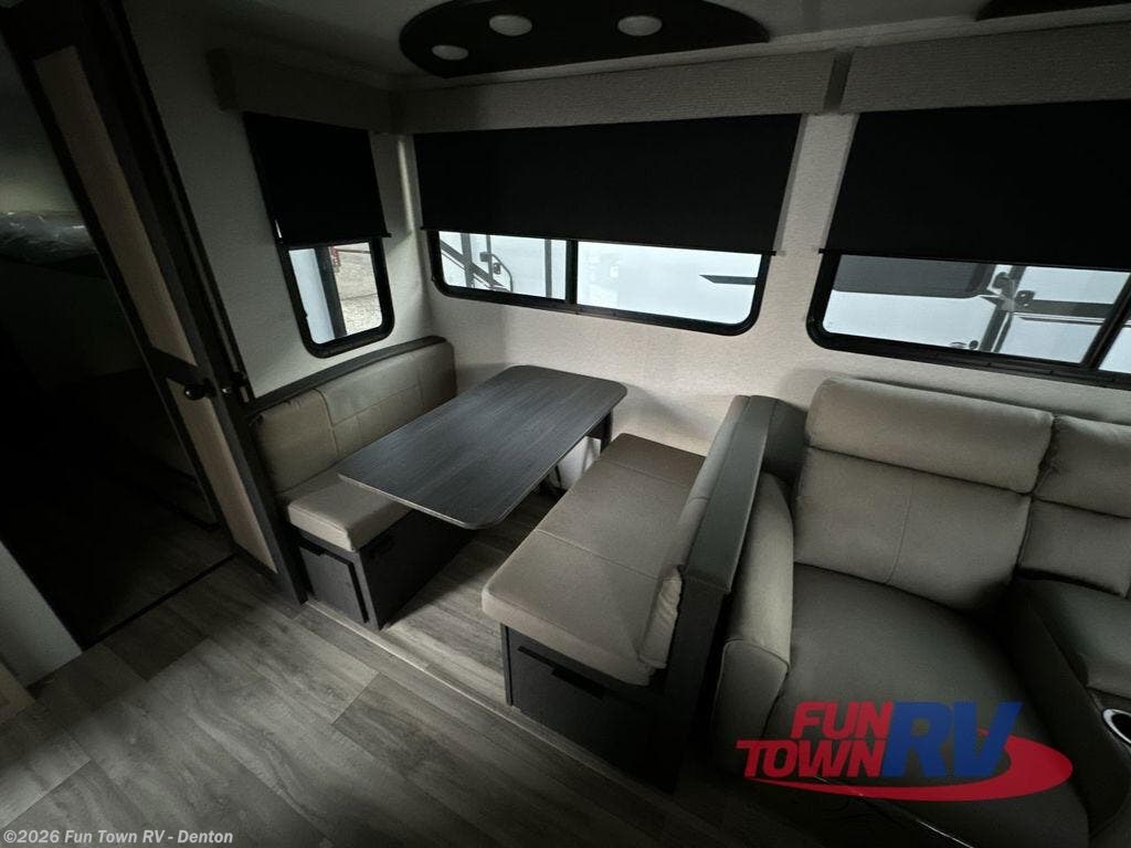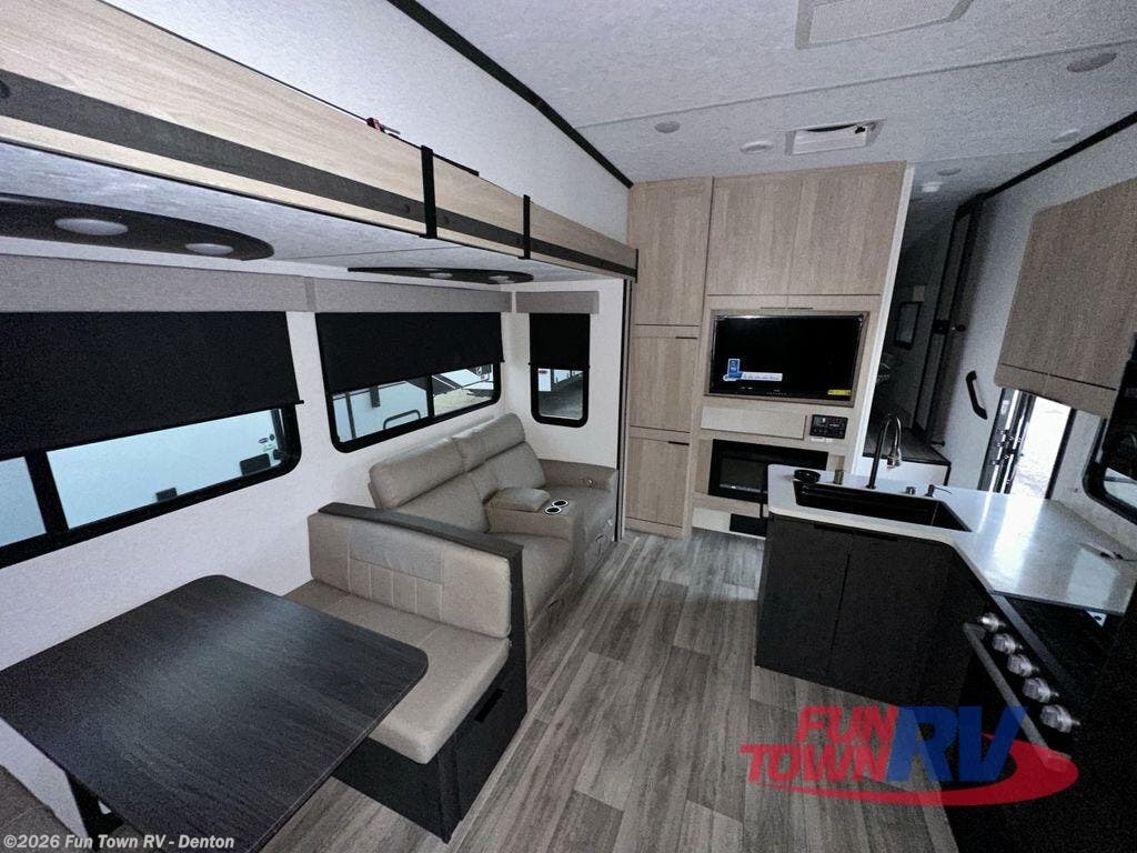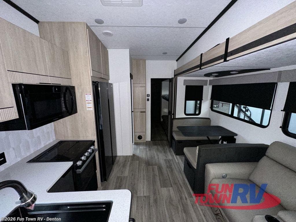 Each one of these CrossRoads RV Cruiser fifth wheels have high end features incorporated into them! Some of these features include a Secure Stance entry step, a pass-through storage with magnetic slam latch doors to keep your gear stored safely, and an electric awning with LED lights to highlight the good times at night. Their construction consists of a one-piece seamless Super Flex roof, an aerodynamic front cap, plus high gloss laminated sidewalls for added durability. You'll have the option to stay connected wherever you go with the Winegard WiFi prep, and the HDTV will keep you entertained on those rainy days. The interior includes hardwood cabinet doors, stainless steel appliances, roller shades, solid surface kitchen countertops, and many more comforts!